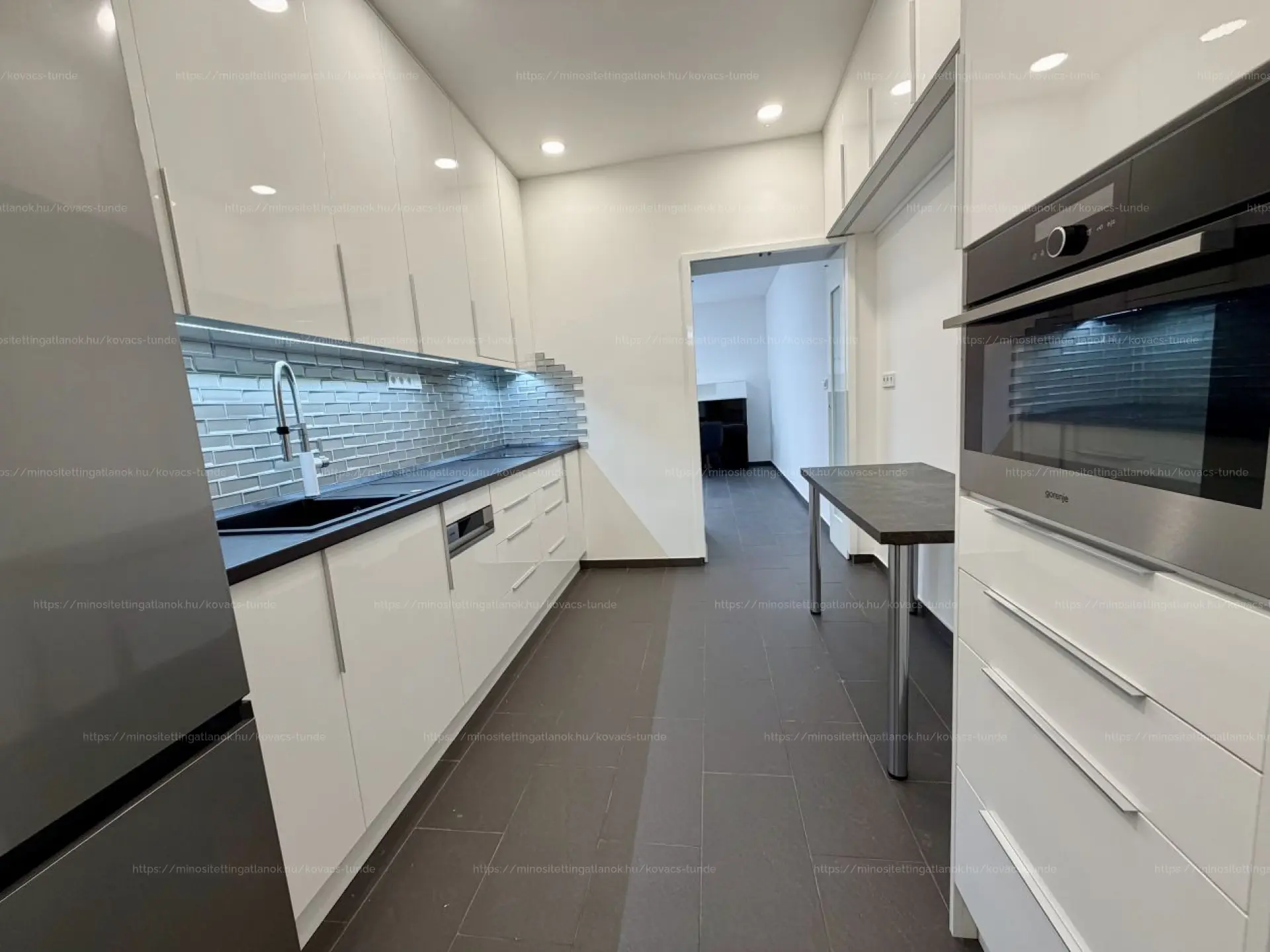 A konyha teljesen felszerelt: prémium gépekkel, modern konyhabútorral és minden kényelmi elemmel. A lakás teljes bútorzattal együtt eladó, azonnal költözhető.