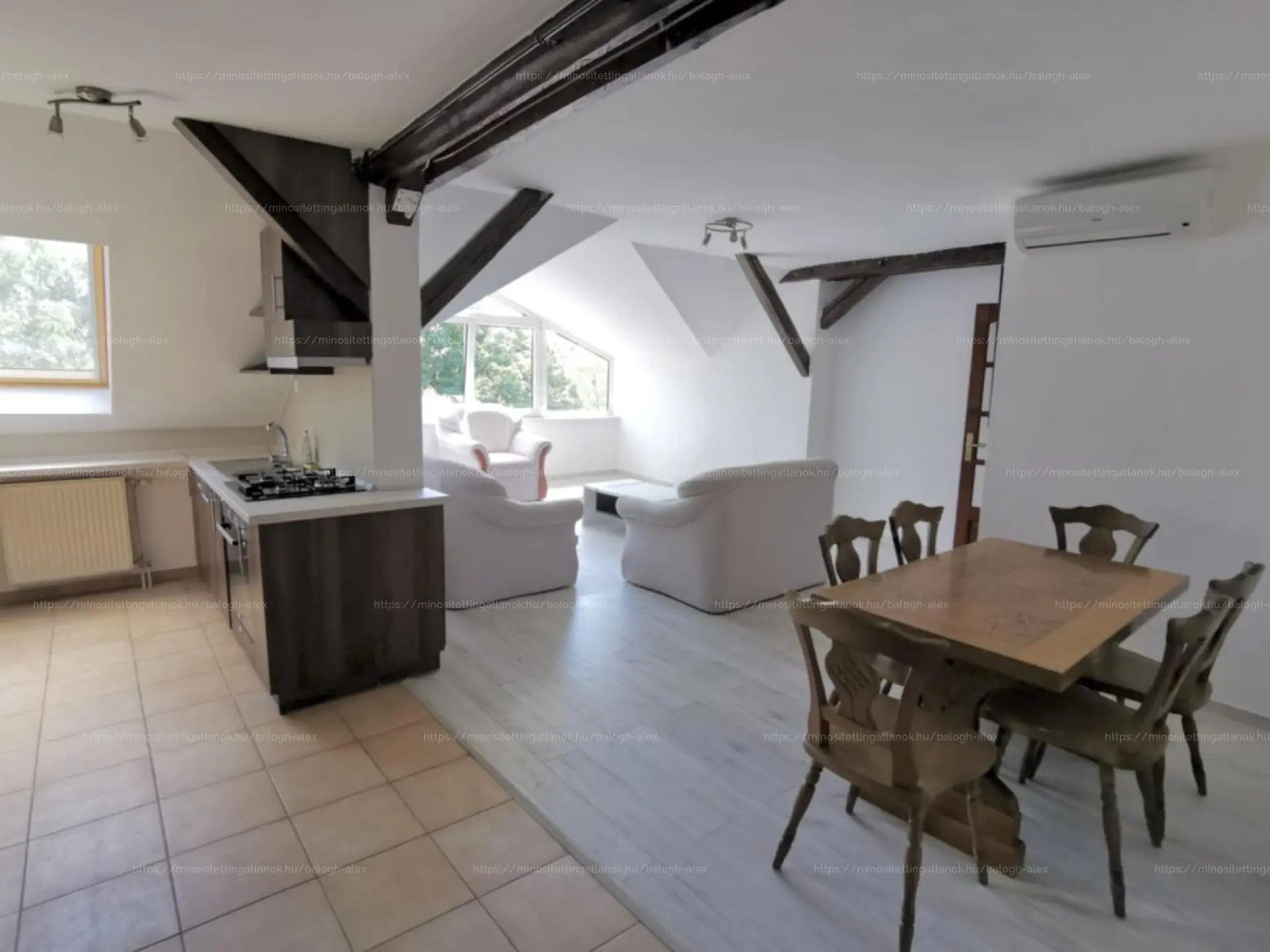 A konyha az étkezővel és a nappalival egy légtérben helyezkedik el, ahol egy kényelmes 3+2+1 ülőgarnitúra és dohányzóasztal biztosítja a komfortot. Az étkezőrészben egy hatfős étkezőasztal várja a közös étkezéseket vagy baráti összejöveteleket.