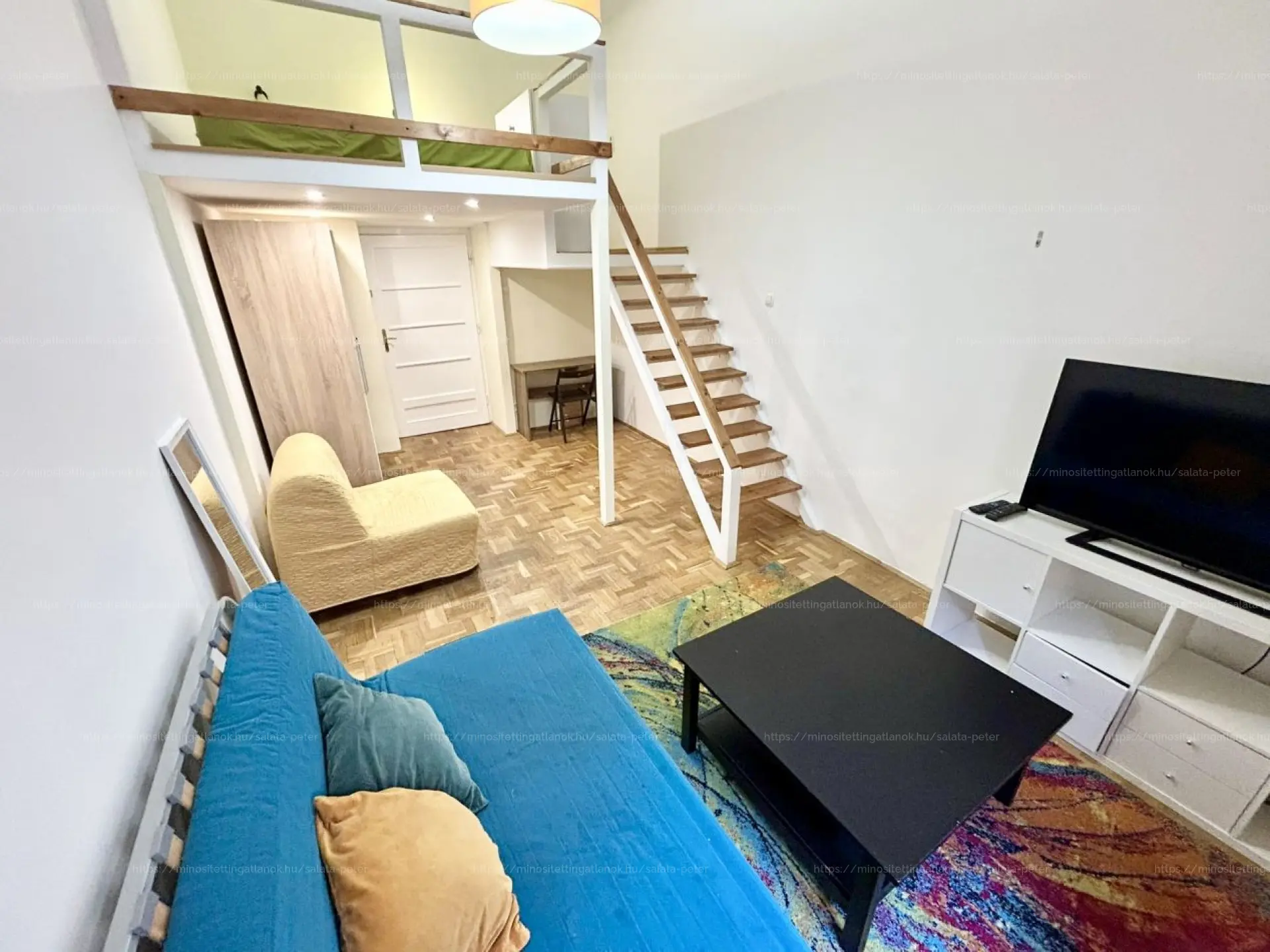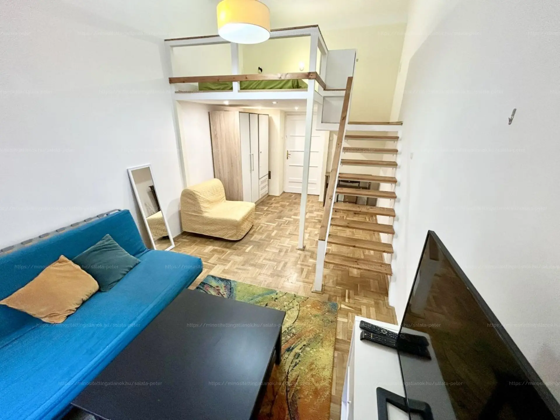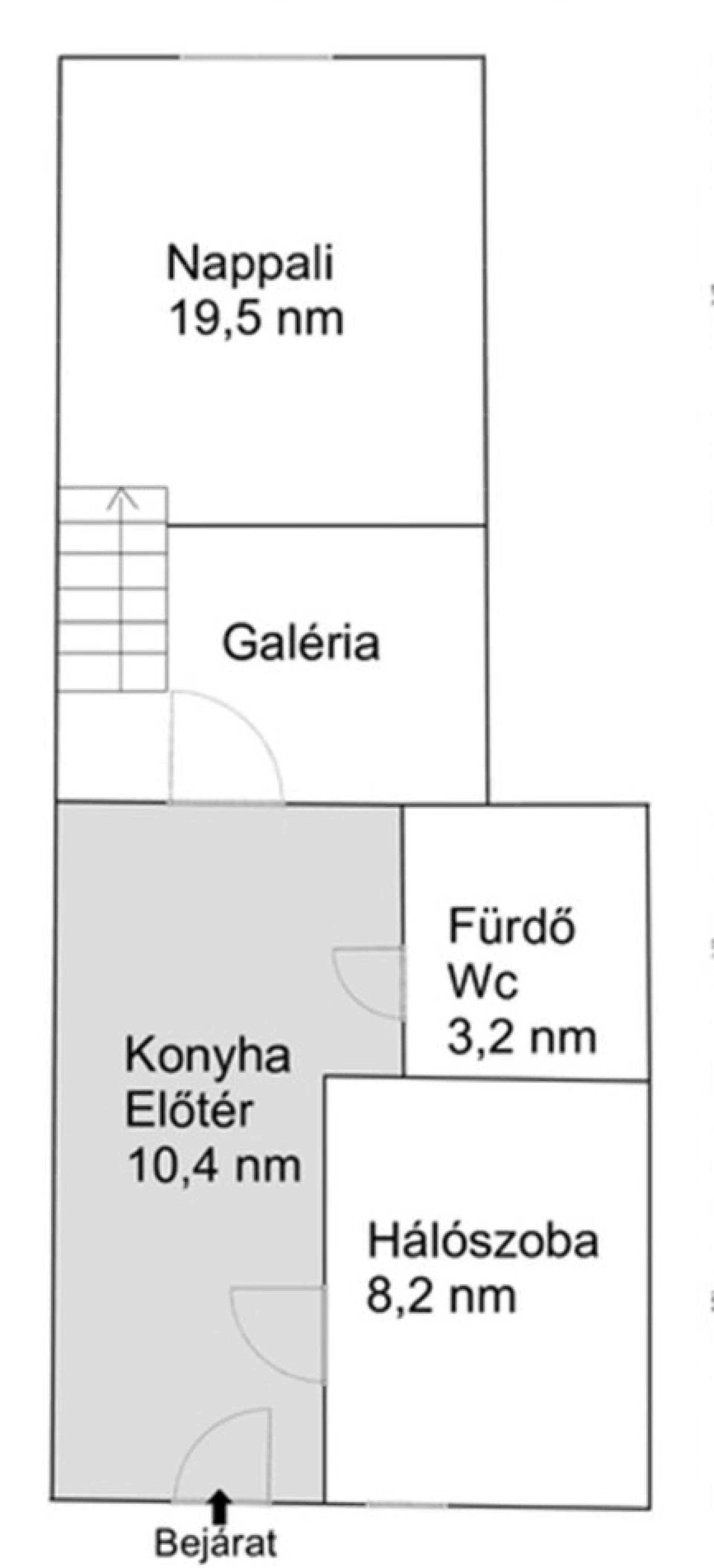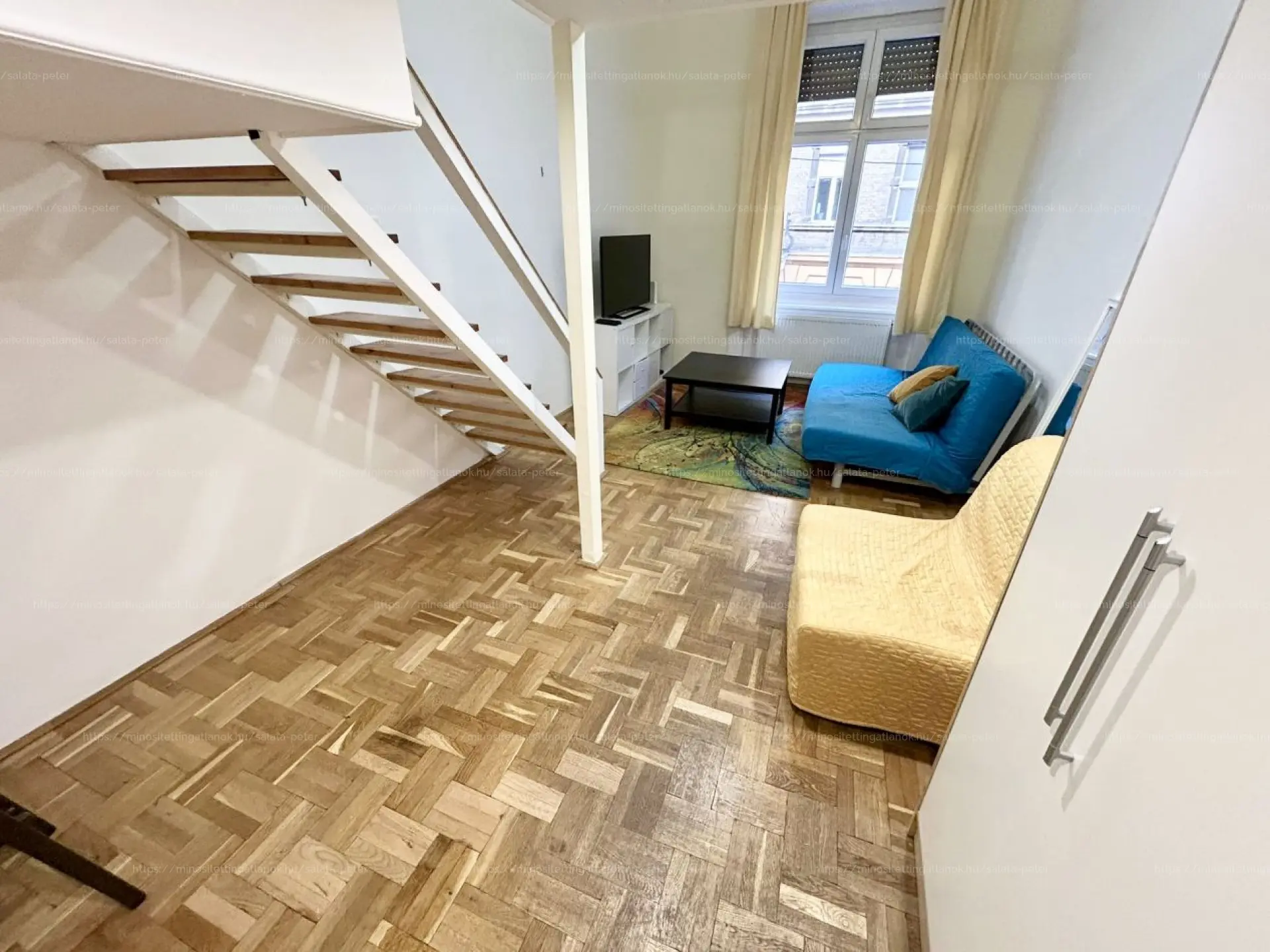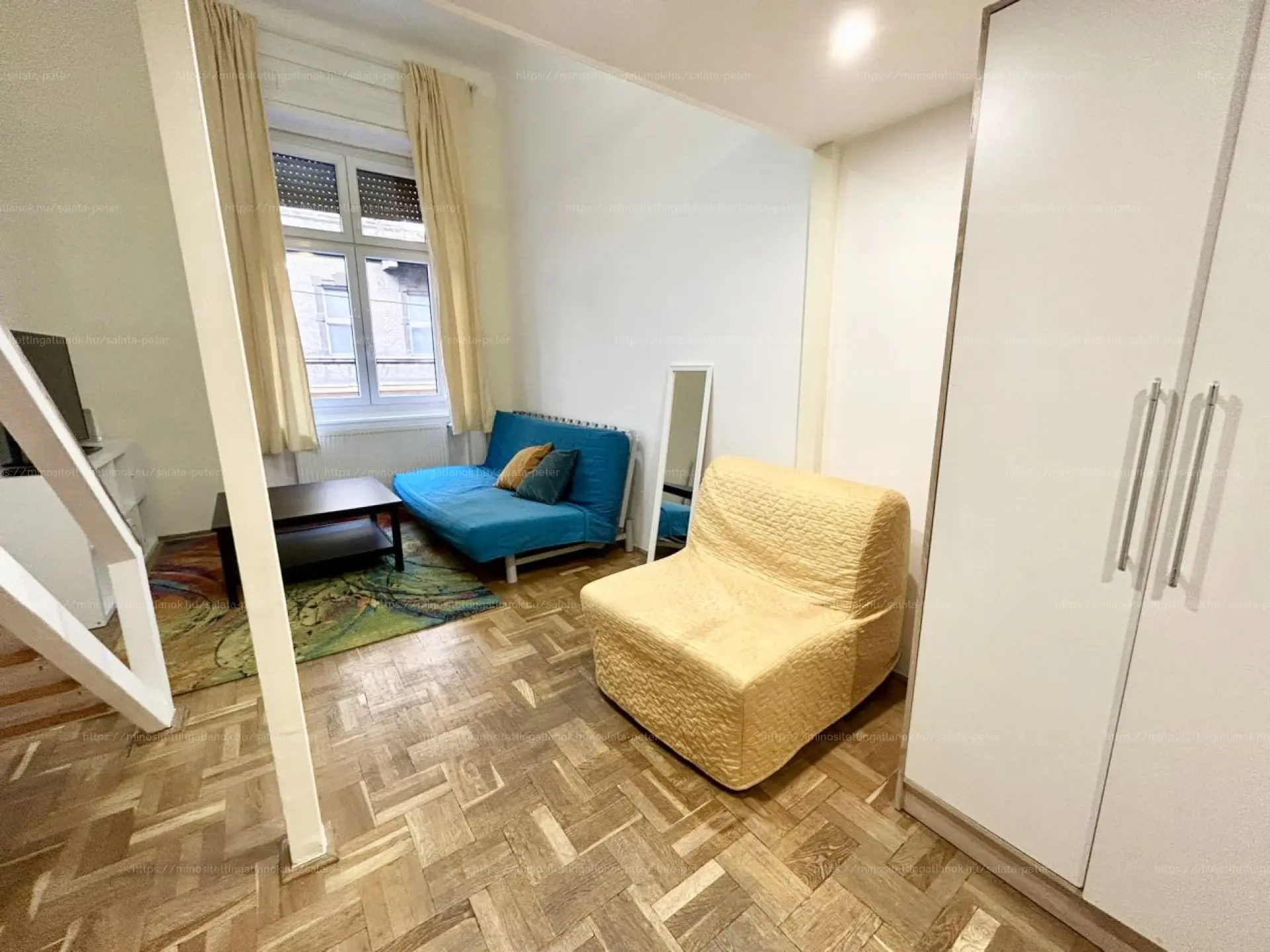 - 2 külön nyíló szoba (egyik szoba a körfolyosóra, a másik utcára tekint, valamint egy galéria került kialakításra benne)