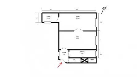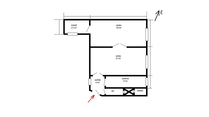 A konyha-kamra átalakításával, remek nappali + 2 szobás lakást lehet kialakítani.