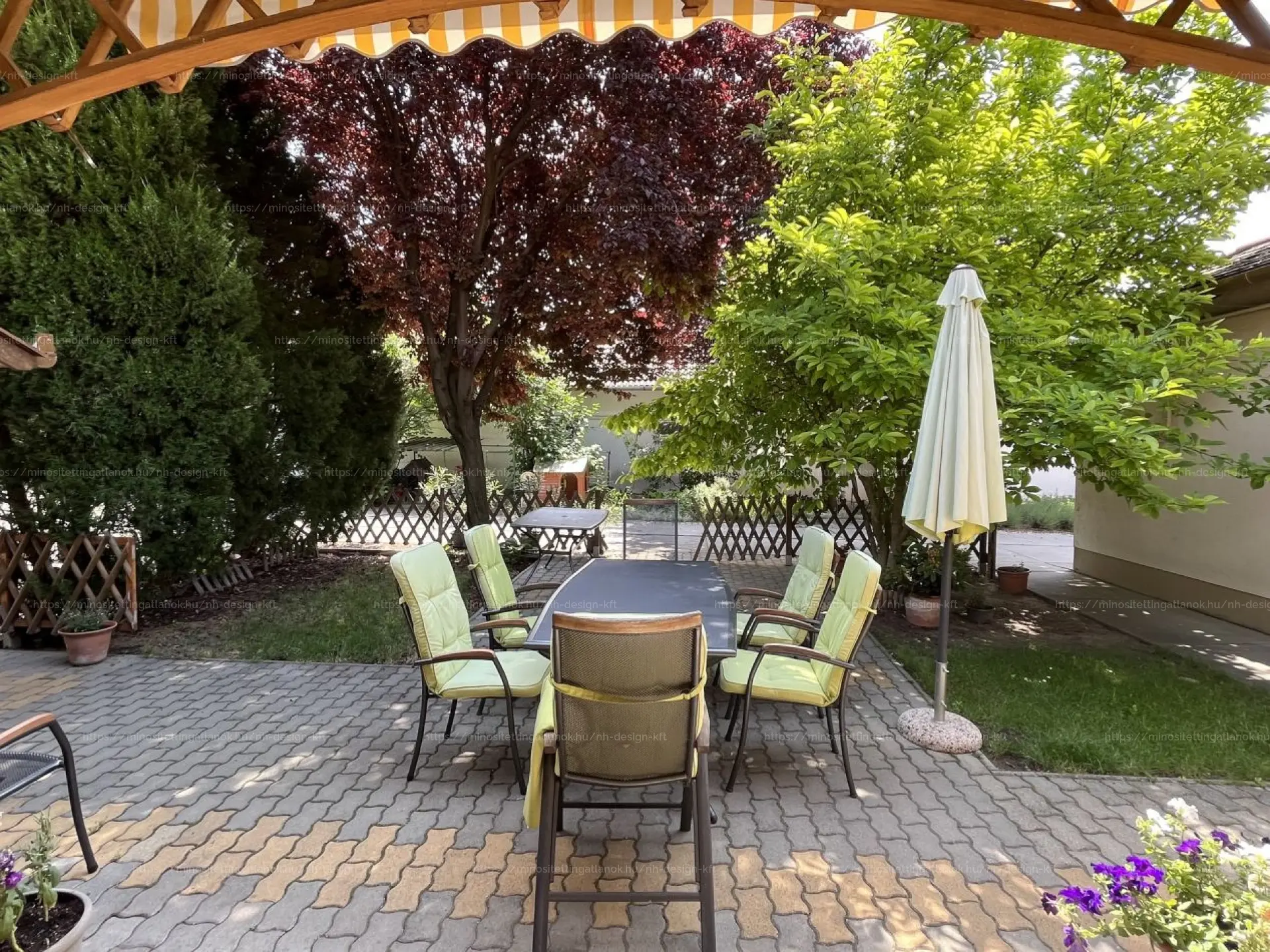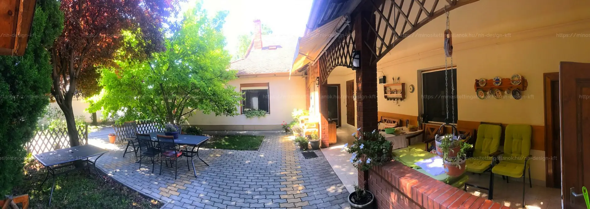- a lakótérből közvetlen kapcsolat nyílik a térkövezett teraszra, melyet egy hangulatos, fedett veranda köt össze a házzal