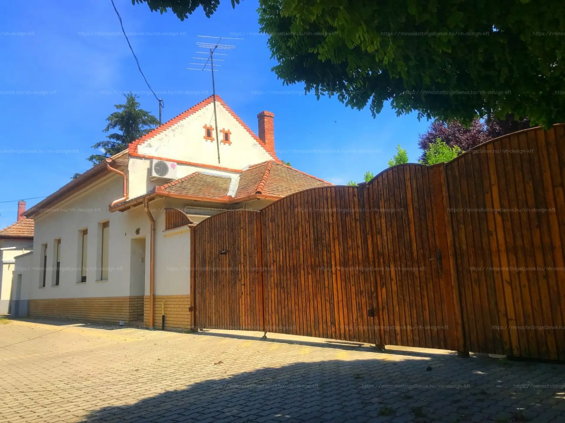 Az utcafronton egy felújított, polgári jellegű családi ház található, amelyet a későbbi felújítás során kibővítettek: