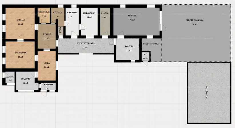 - a műhely mögött egy 264 m²-es, fedett csarnok