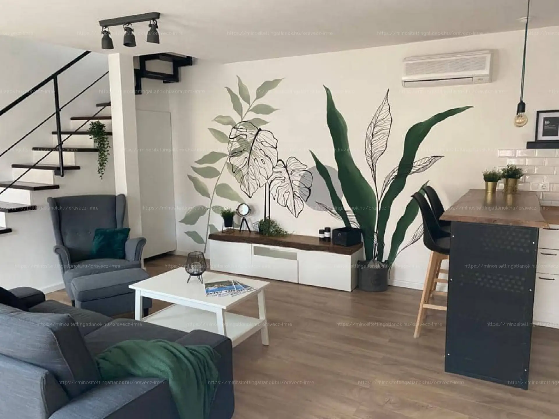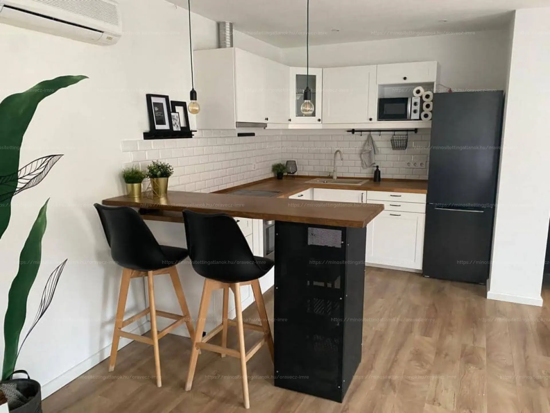 A ingatlan teljesen gépesített: mosógép, mosogatógép, hűtő, valamint két klíma (lent és fent).
