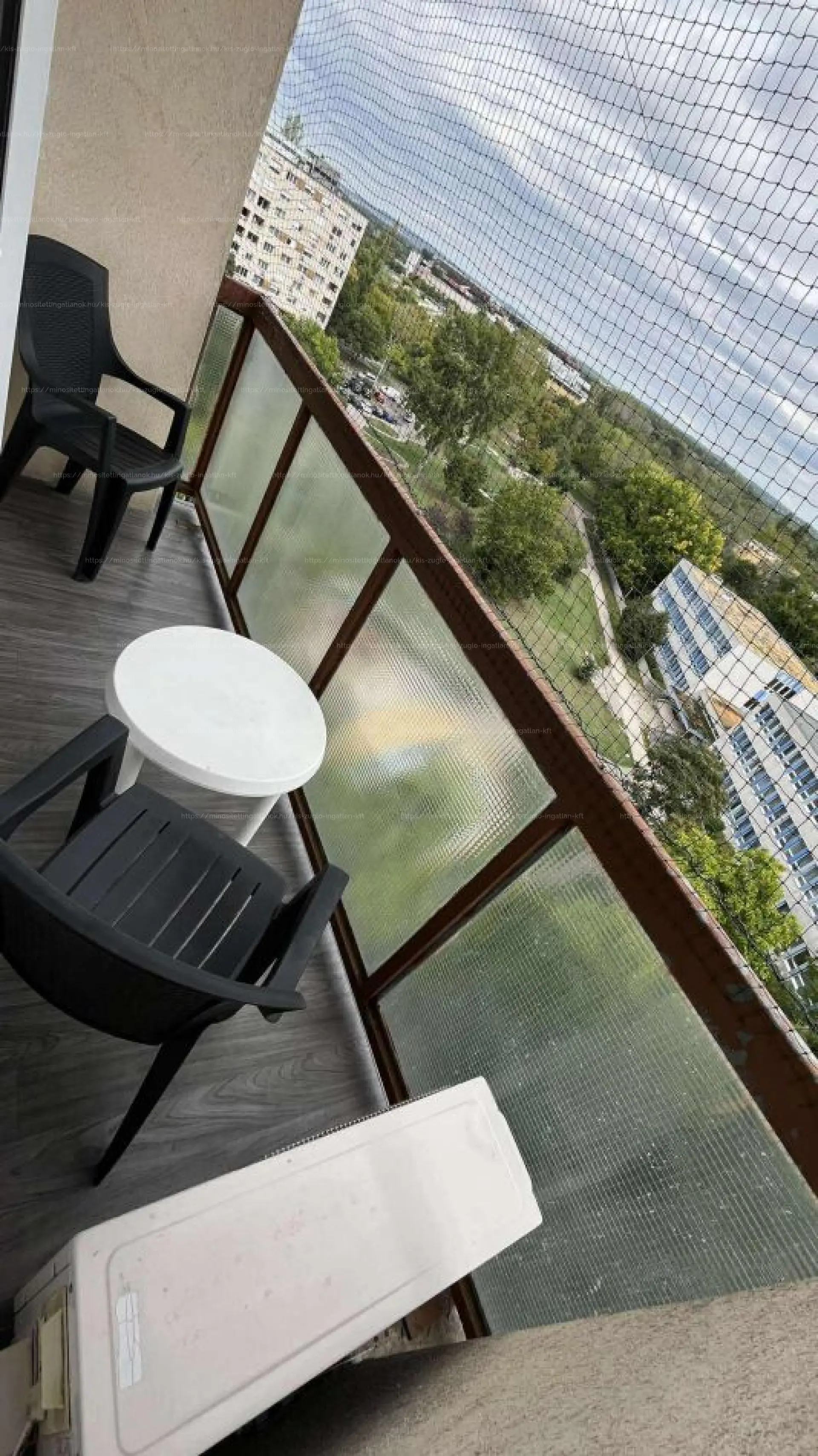 Az erkély csendes parkra néz, dél-keleti tájolású.