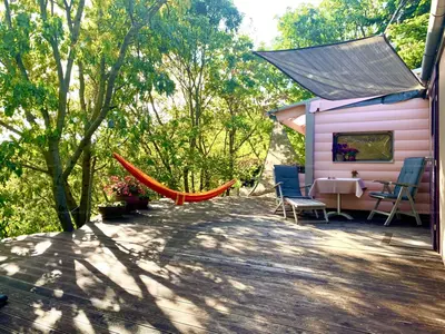 A telken egy 39 m²-es, teljesen szigetelt faház áll, amely a mindennapi lakhatásra is tökéletesen alkalmas. A gondos kivitelezésnek köszönhetően 15 cm szigeteléssel, villanyfűtéssel, vízzel, 3x25A elektromos kapacitással és biológiai szennyvíztisztítóval felszerelt. A másfél szobás házhoz egy 45 m²-es vörösfenyő terasz kapcsolódik, ahonnan a látvány és a levegő egyszerre tisztítja és inspirálja a lelket.