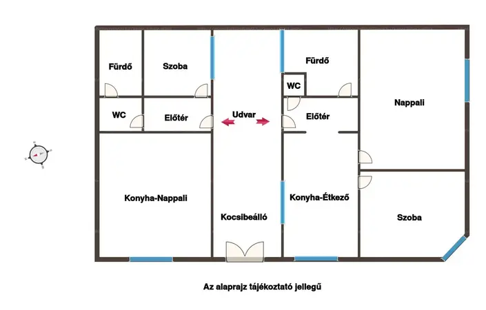 🔹 70 m²-es, 2 szobás, közepes állapotú házrész