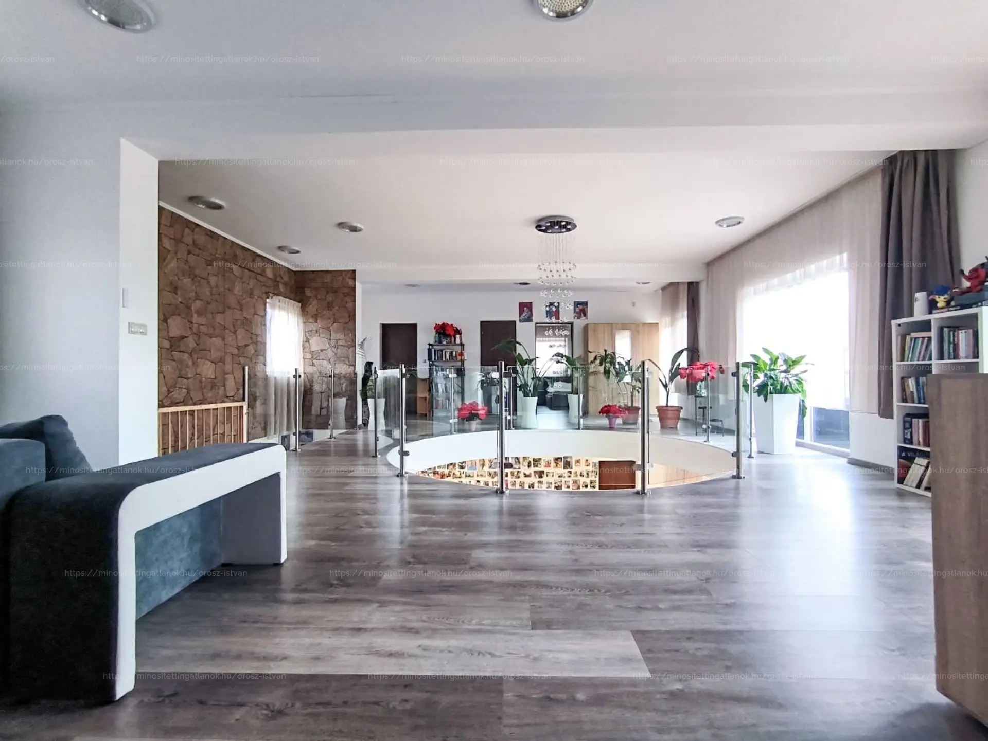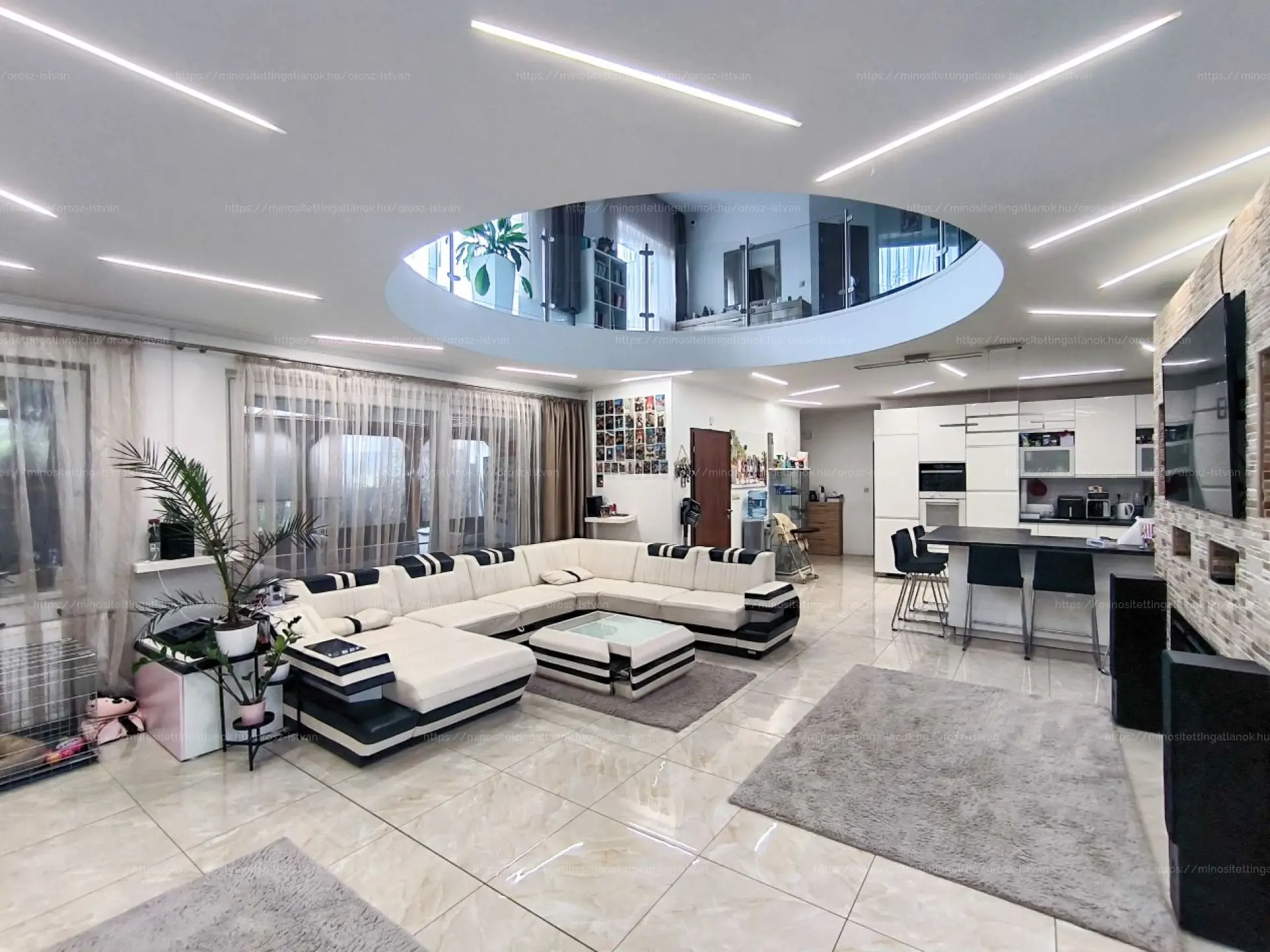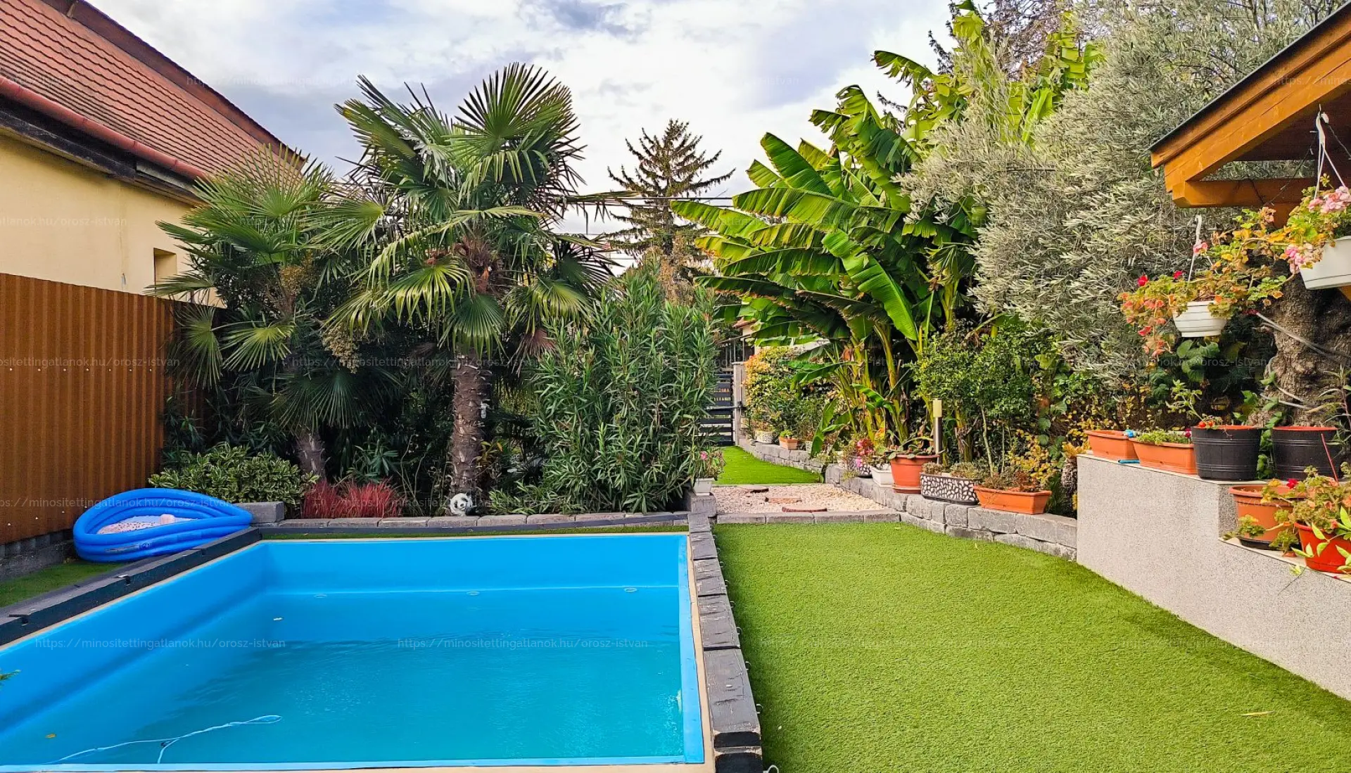 A ház 2020-ban épült, két szinten összesen mintegy 400 négyzetméteren kínál tágas, világos tereket és modern életteret. A 943 m²-es, parkosított telek mediterrán hangulatot áraszt: pálmák, banánfák és kivi bokrok között sétálva az ember könnyen elfelejti, hogy Magyarországon jár. Továbbá 2 db fúrt kút is kialakításra került.