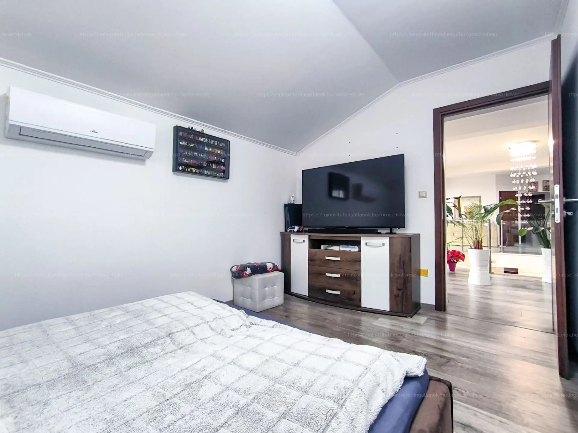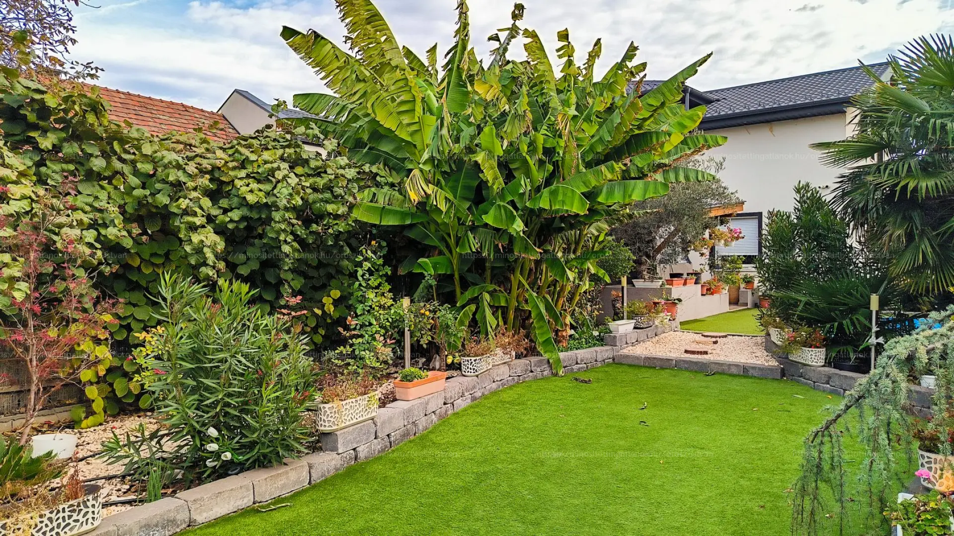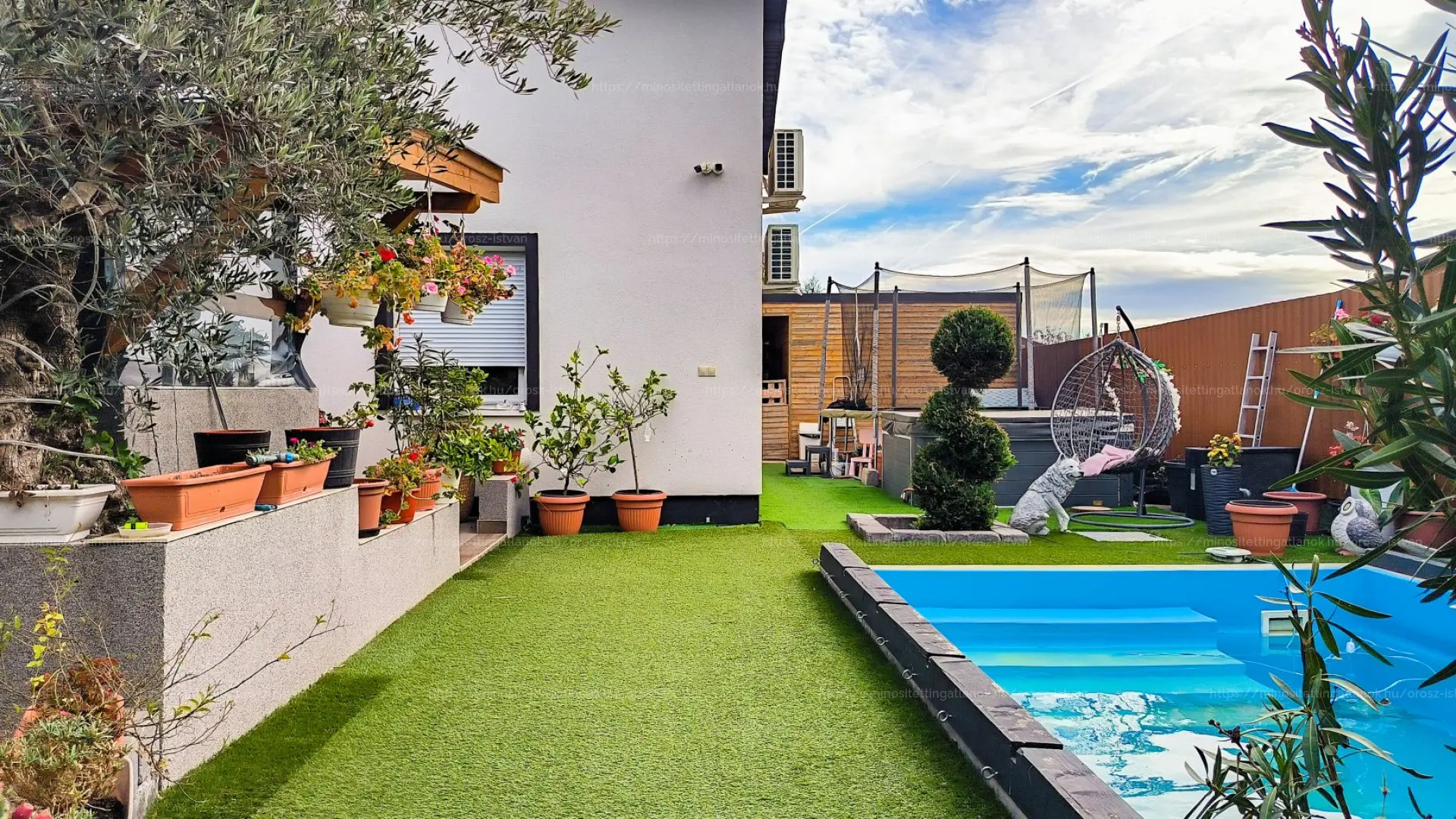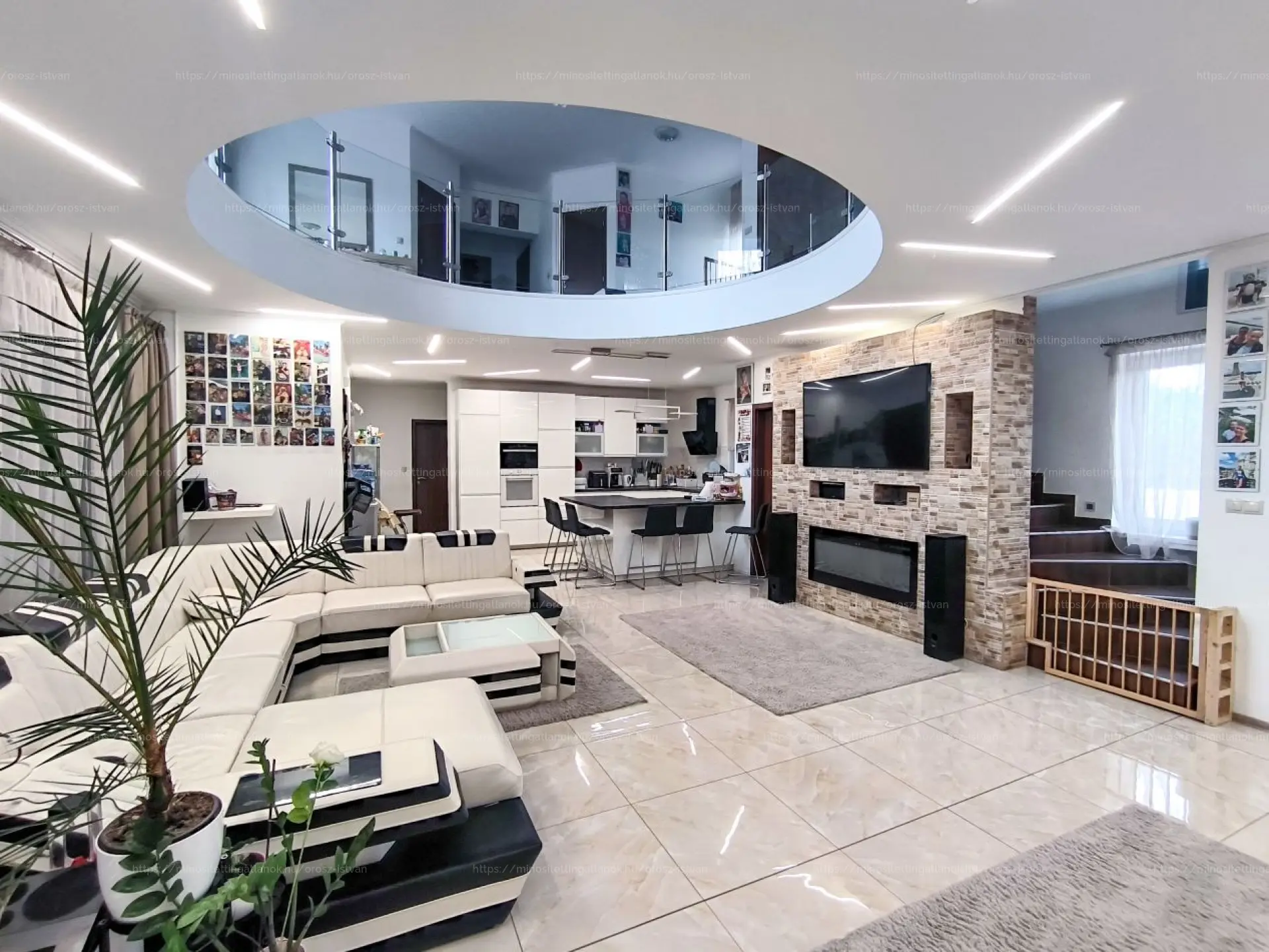 A ház 2020-ban épült, két szinten összesen mintegy 400 négyzetméteren kínál tágas, világos tereket és modern életteret. A 943 m²-es, parkosított telek mediterrán hangulatot áraszt: pálmák, banánfák és kivi bokrok között sétálva az ember könnyen elfelejti, hogy Magyarországon jár. Továbbá 2 db fúrt kút is kialakításra került.