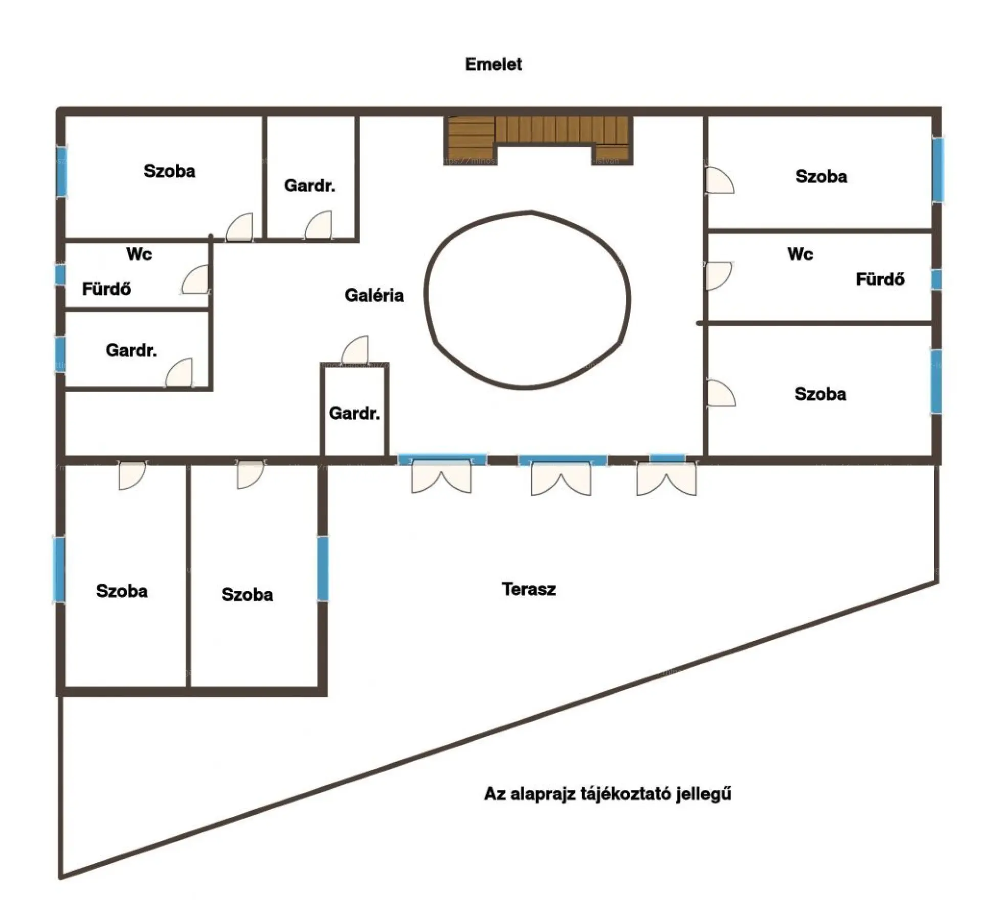 A 7 szoba és 4 fürdőszoba akár többgenerációs együttélést is lehetővé tesz, a ház minden helyiségében külön klímaberendezéssel.