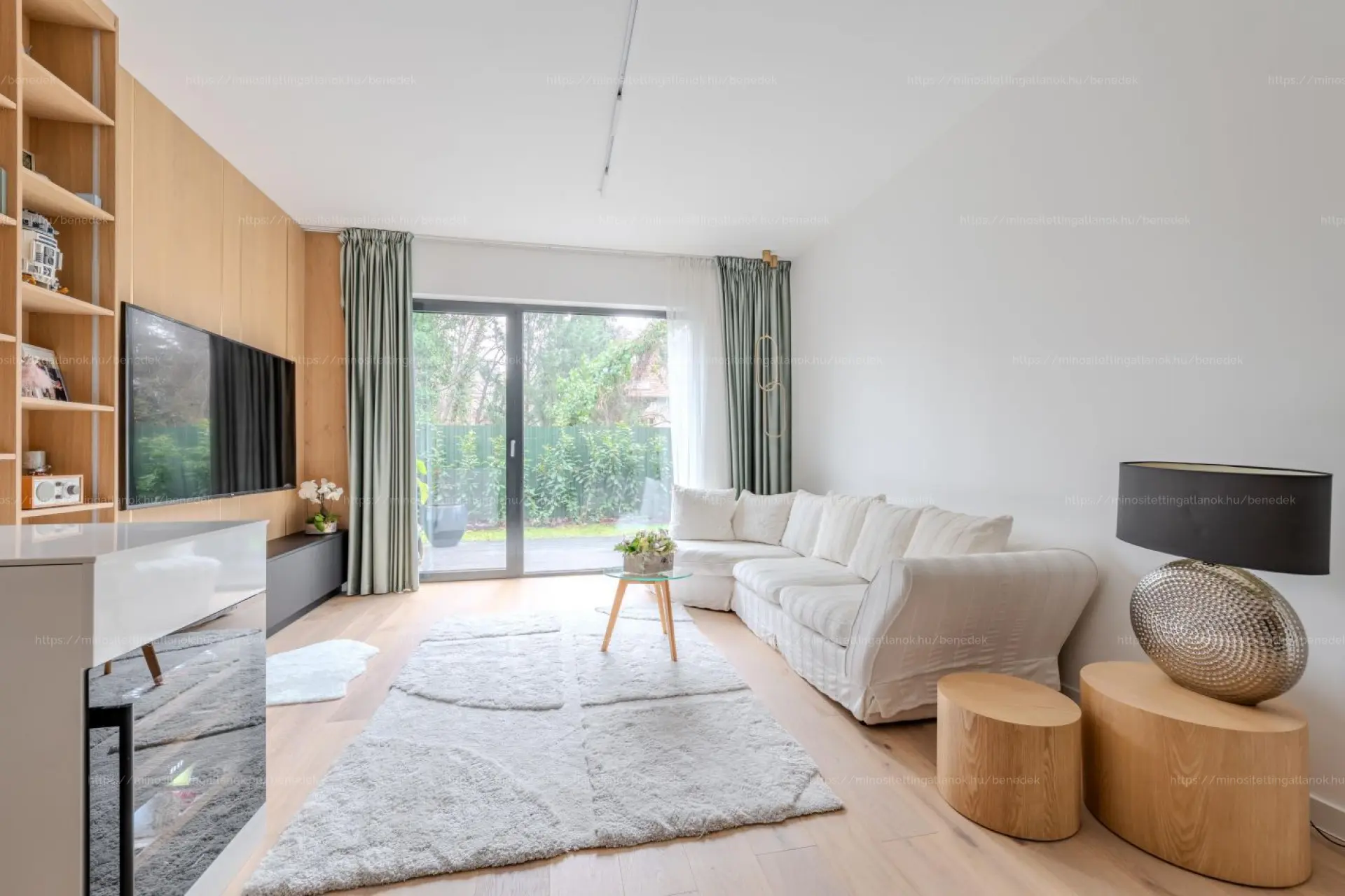 Budapest egyik legkedveltebb zöldövezeti részén, a Kis-Svábhegyen eladó egy 2023-ban épült, földszinti, kertkapcsolatos luxuslakás egy modern, zárt lakóparkban.
