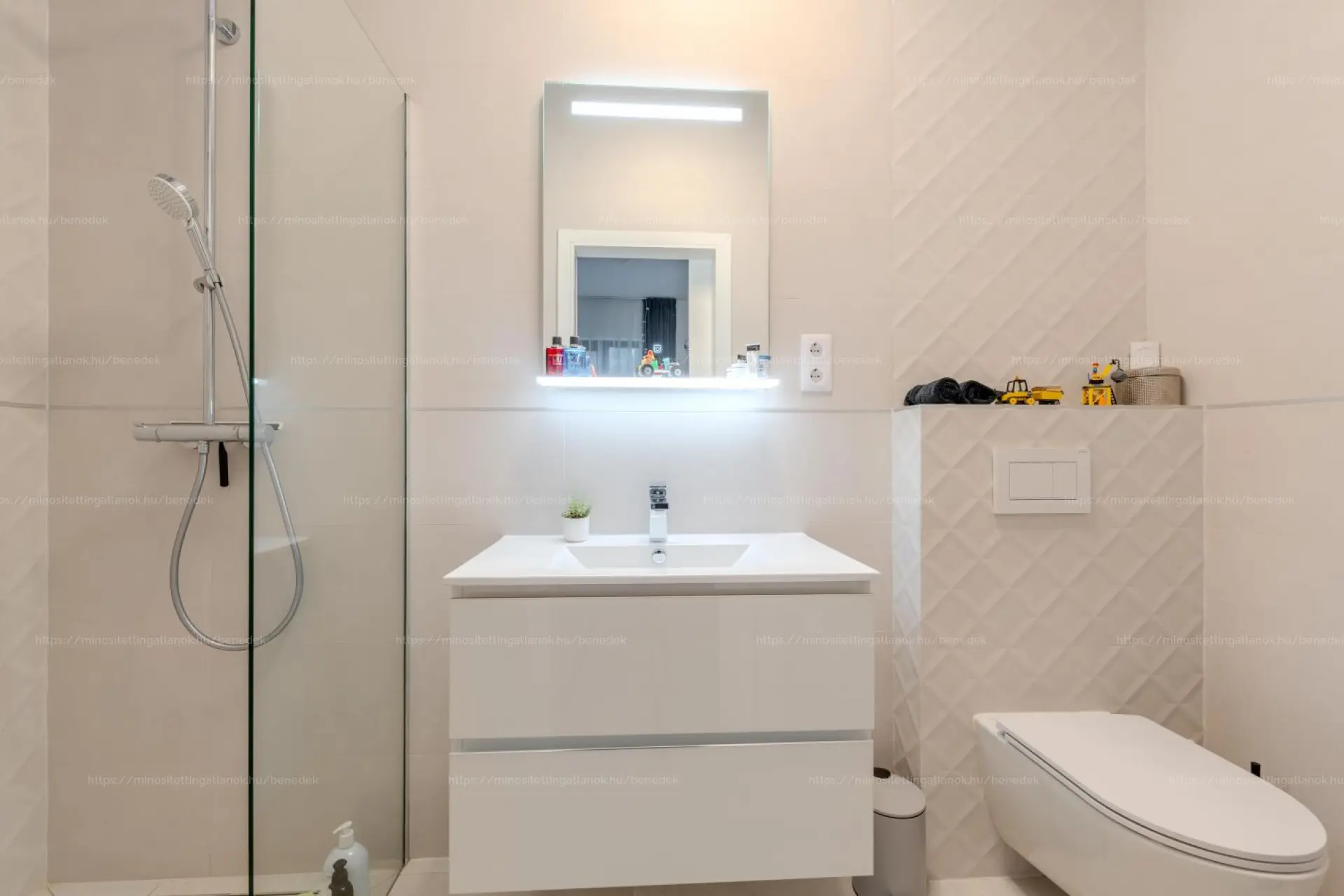 A lakás kialakítása modern, letisztult, mégis időtálló. A duplakomfortos elrendezés ideális akár családnak, akár hosszú távú befektetésnek.