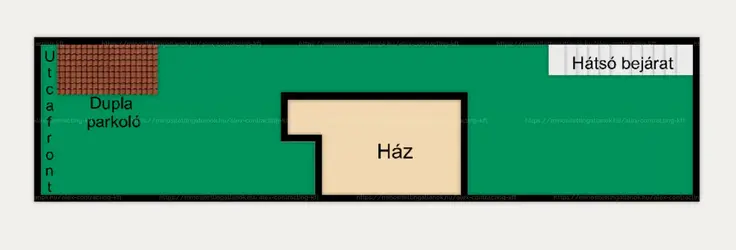 540nm-es saját telek körbekerített, 85%-ban sík, a hátsó kert terasz mögötti része lépcsőzetes kialakítású.