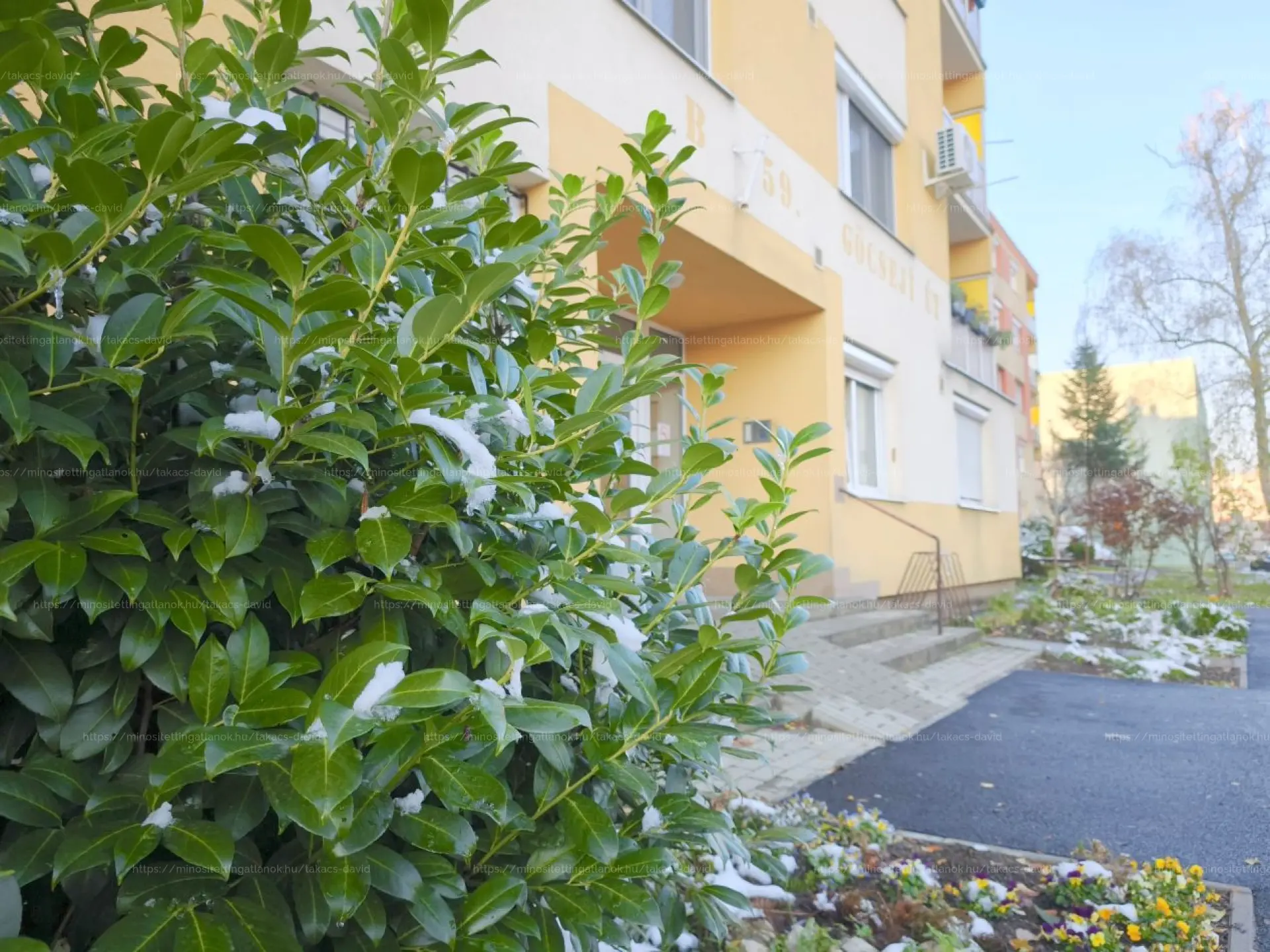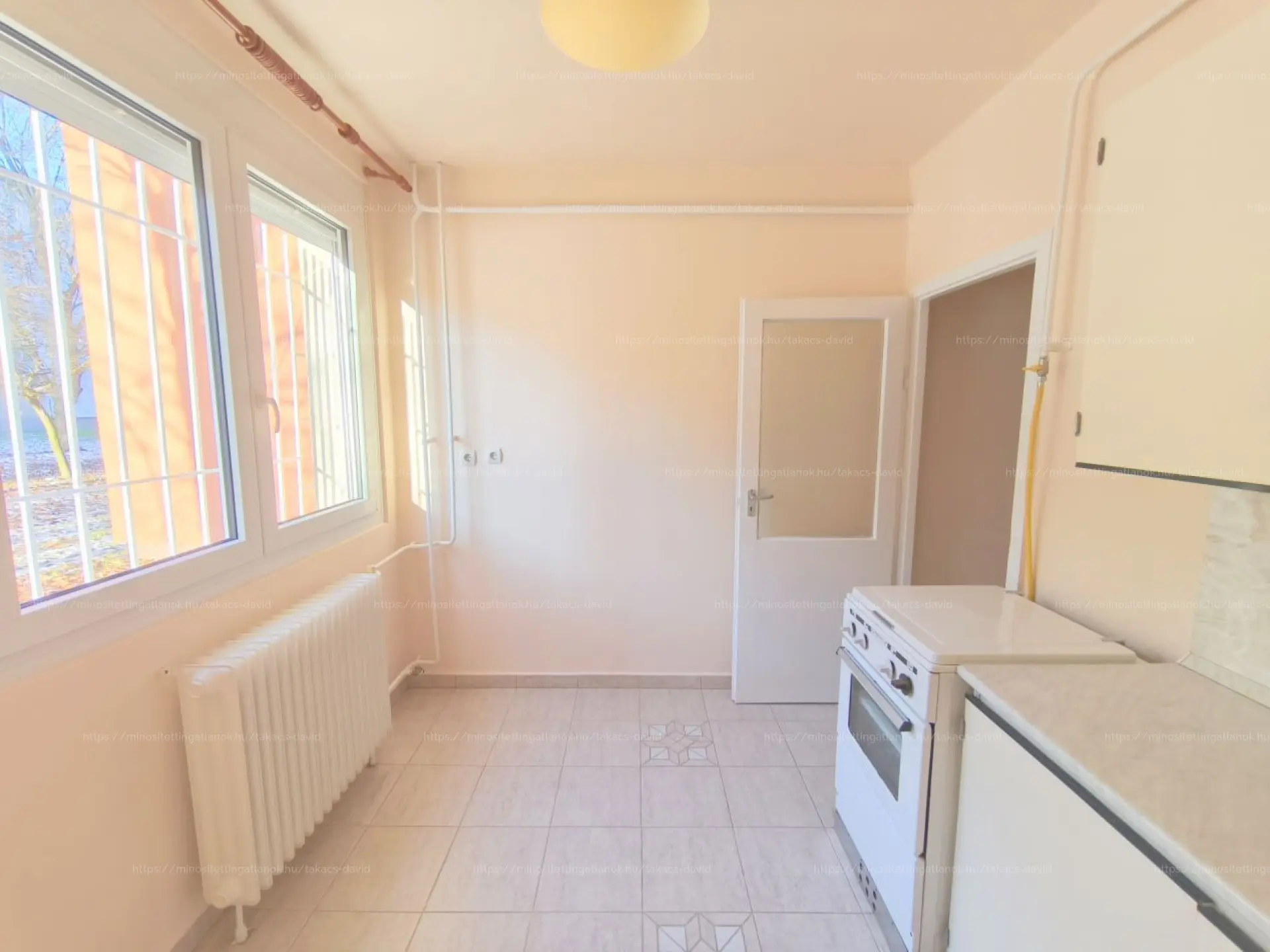 A lakás földszinti, műanyag nyílászárókkal és redőnyökkel felszerelt, valamint biztonsági ráccsal is ellátott – bár a környék eleve csendes és kifejezetten biztonságos.