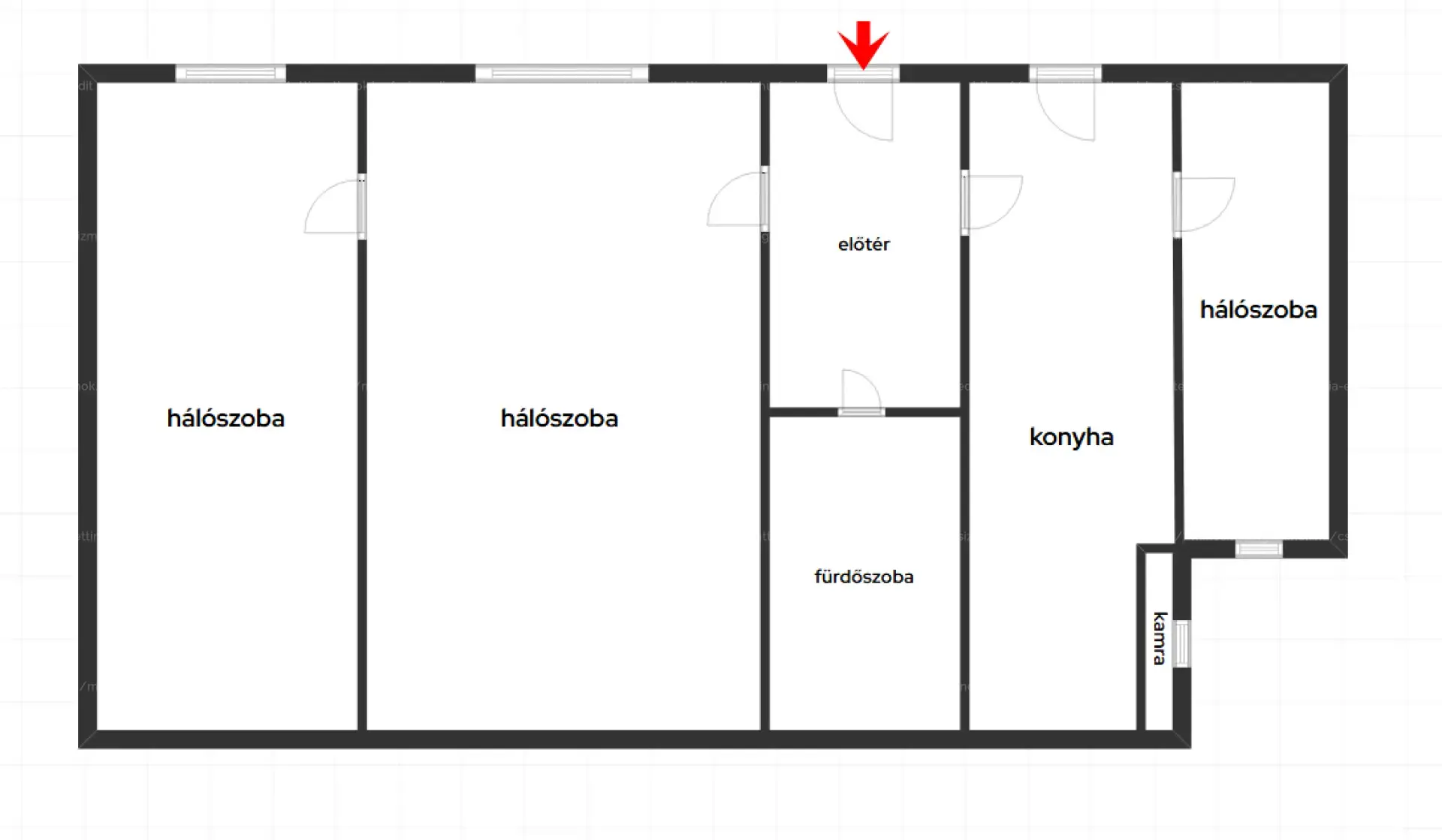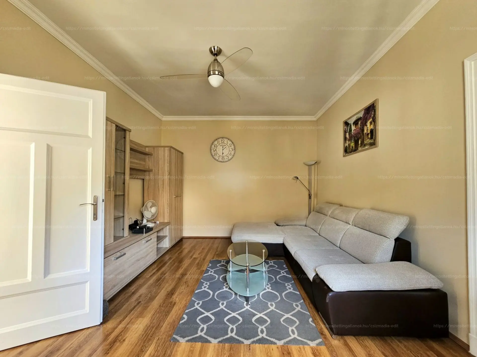 Jó elrendezésű, 55 nm-es, 2+ 1/2 szobás, kádas fürdőszobás, hatalmas konyhájához egy kisebb ablakos kamra is tartozik.