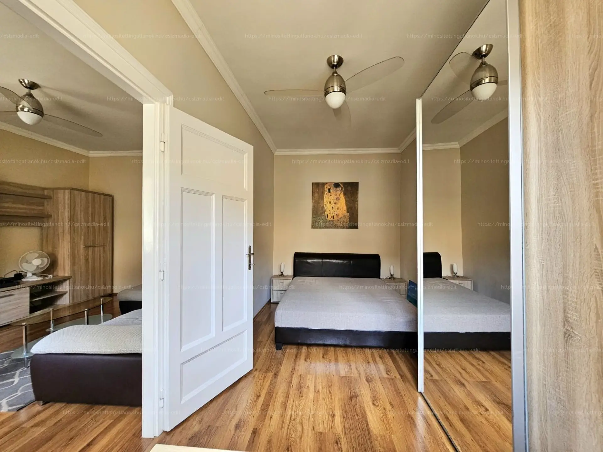 Eredetileg 2 szobás volt, de a cselédszobát a hozzá tartozó bejárattal együtt a lakáshoz nyitották, így KÉT BEJÁRATTAL is rendelkezik az ingatlan. Ez a területi bővítés a tulajdoni lapon is rendezve lett.