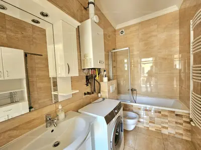 Well laid out, 55 sqm, 2+1/2 rooms, with a bathtub in the bathroom, and a large kitchen that includes a smaller pantry with a window.