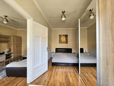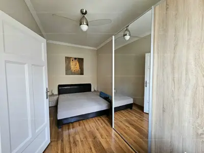 Jó elrendezésű, 55 nm-es, 2+ 1/2 szobás, kádas fürdőszobás, hatalmas konyhájához egy kisebb ablakos kamra is tartozik.
