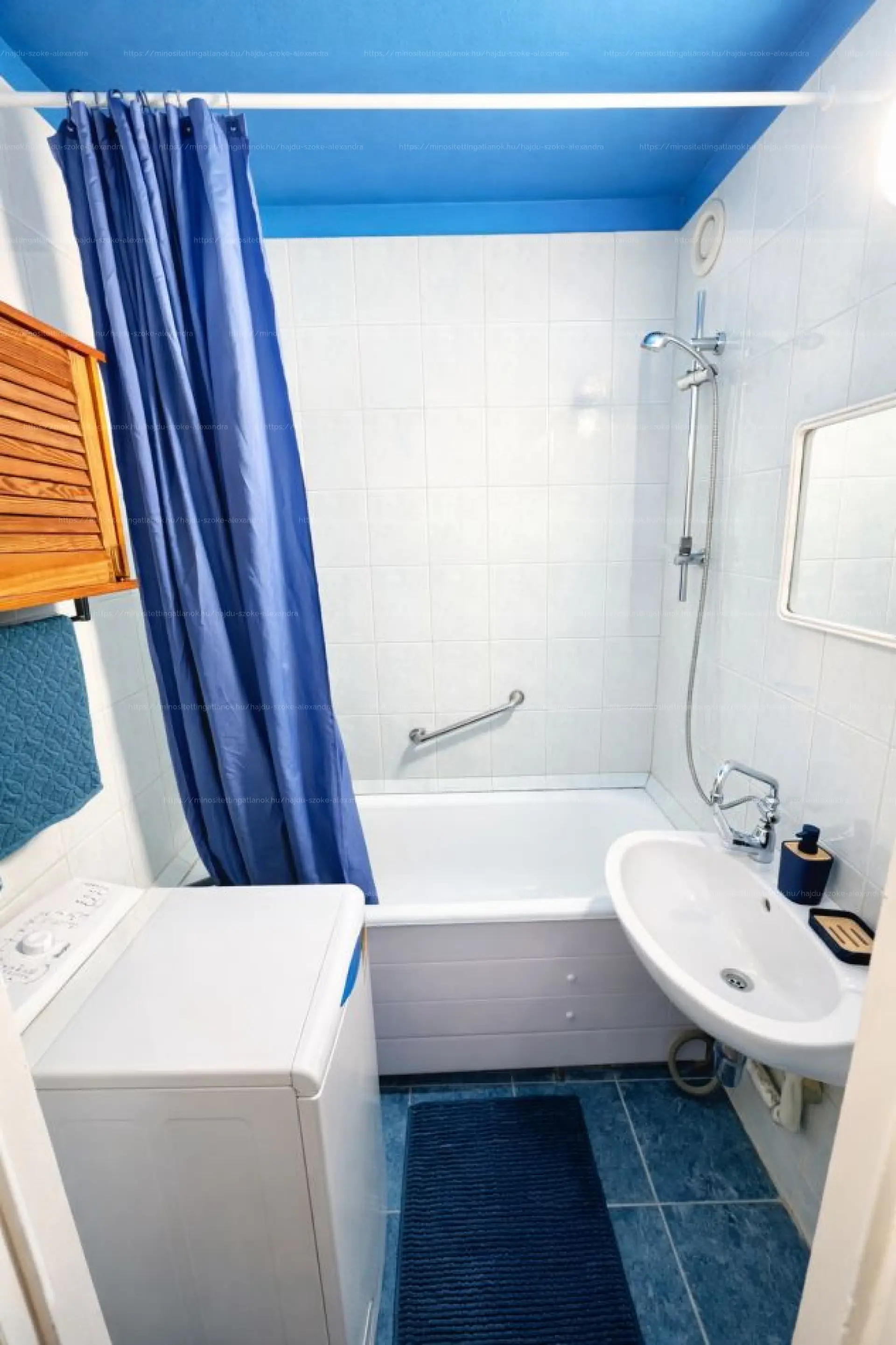 A fürdő és a mellékhelyiség külön helyiségben található.