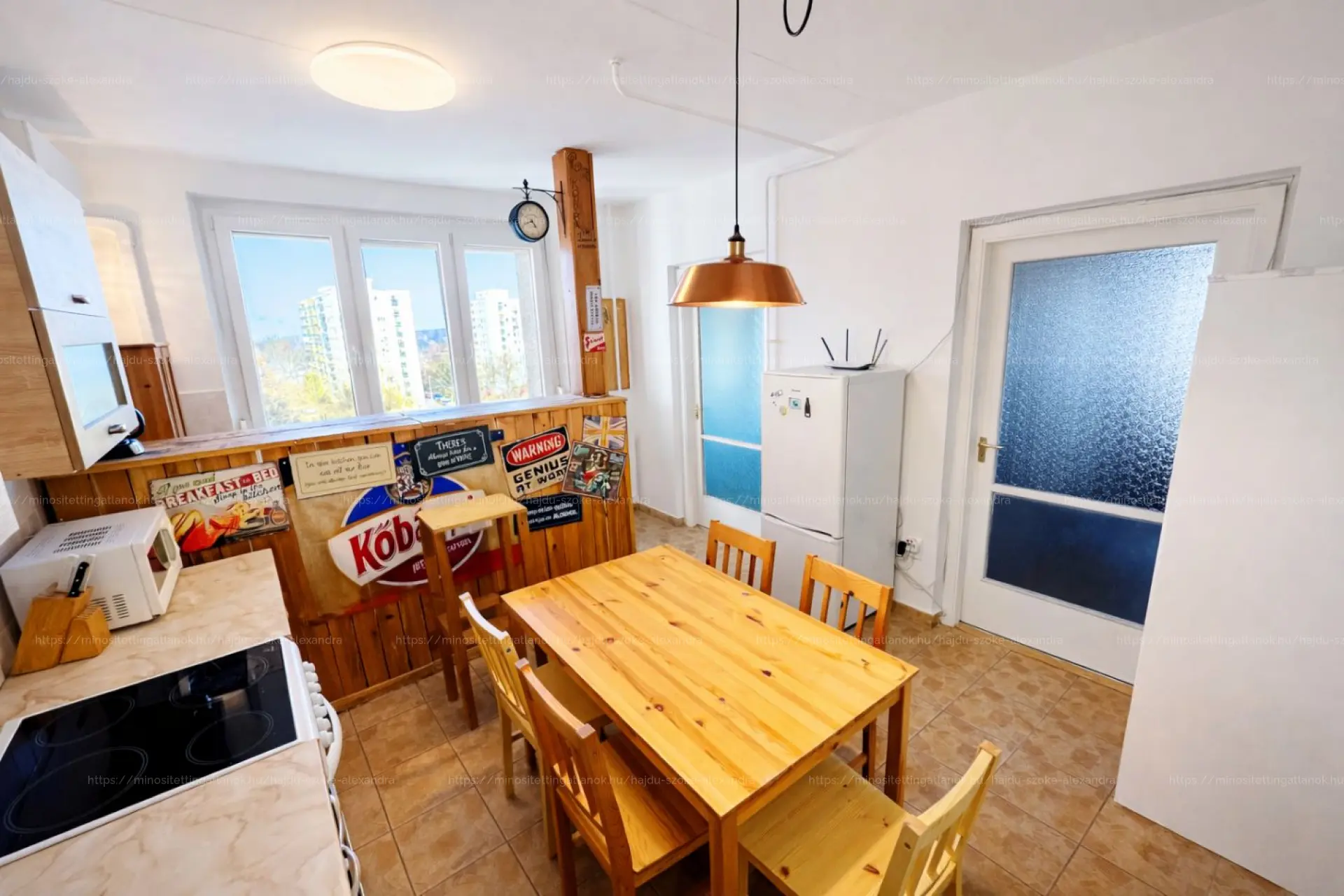 54 m²-es, fényes, tágas lakás egy tíz emeletes társasház hetedik emeletén.