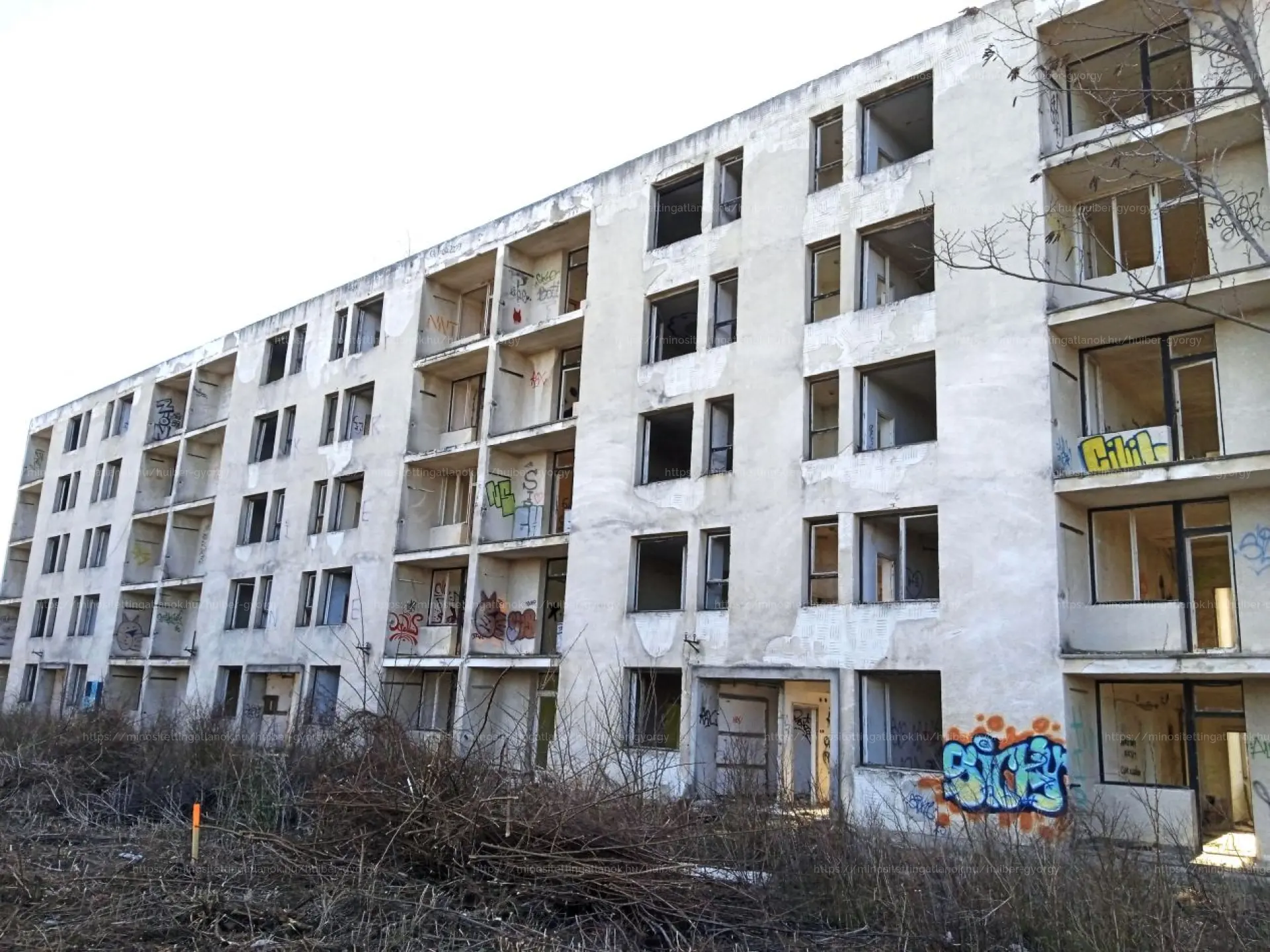 Az ingatlan Veszprémtől keleti irányban található, aszfaltos úton megközelíthető a 8-as főútról, de Szentkirályszabadjáról az újonnan elkészült úton is. A területen több elhagyatott épület is áll, ezek nagyobbik része statikailag megfelelő állapotú, de mindegyik teljes felújításra szorul. A legnagyobb egy ötszintes, eredetileg 54 lakásból álló háztömb. Az ingatlan elhelyezkedésének köszönhetően kiváló lehetőség bármilyen befektetésre, akár turisztikai célzattal is, hiszen a Balaton mindössze 10 km, de közel vannak a Bakony kirándulóhelyei is. A szomszédos területeken folyamatosan jelennek meg üzemek, épülnek új csarnokok, hiszen vállalkozásnak kifogástalan a helyszín.