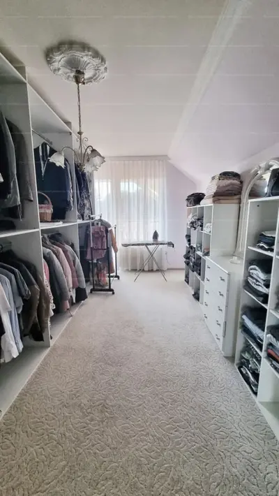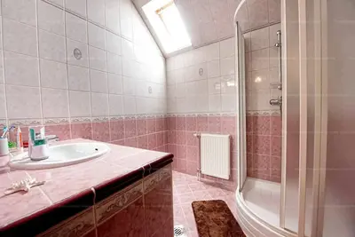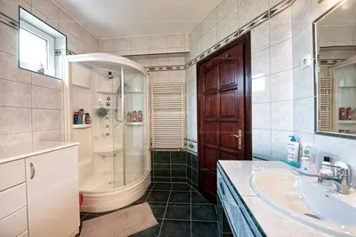 Teljes értékű, fűtött szint, DUPLA GARÁZZSAL (elektromos kapuval), mosókonyhával, tárolókkal, SZAUNÁVAL és zuhanyzóval.