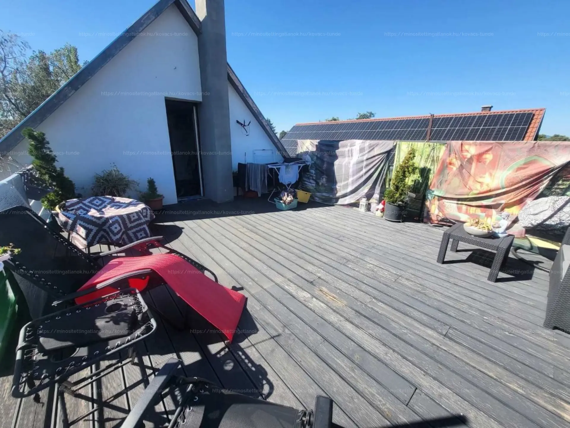 Fával burkolt, óriási terasz a szülői hálószobából