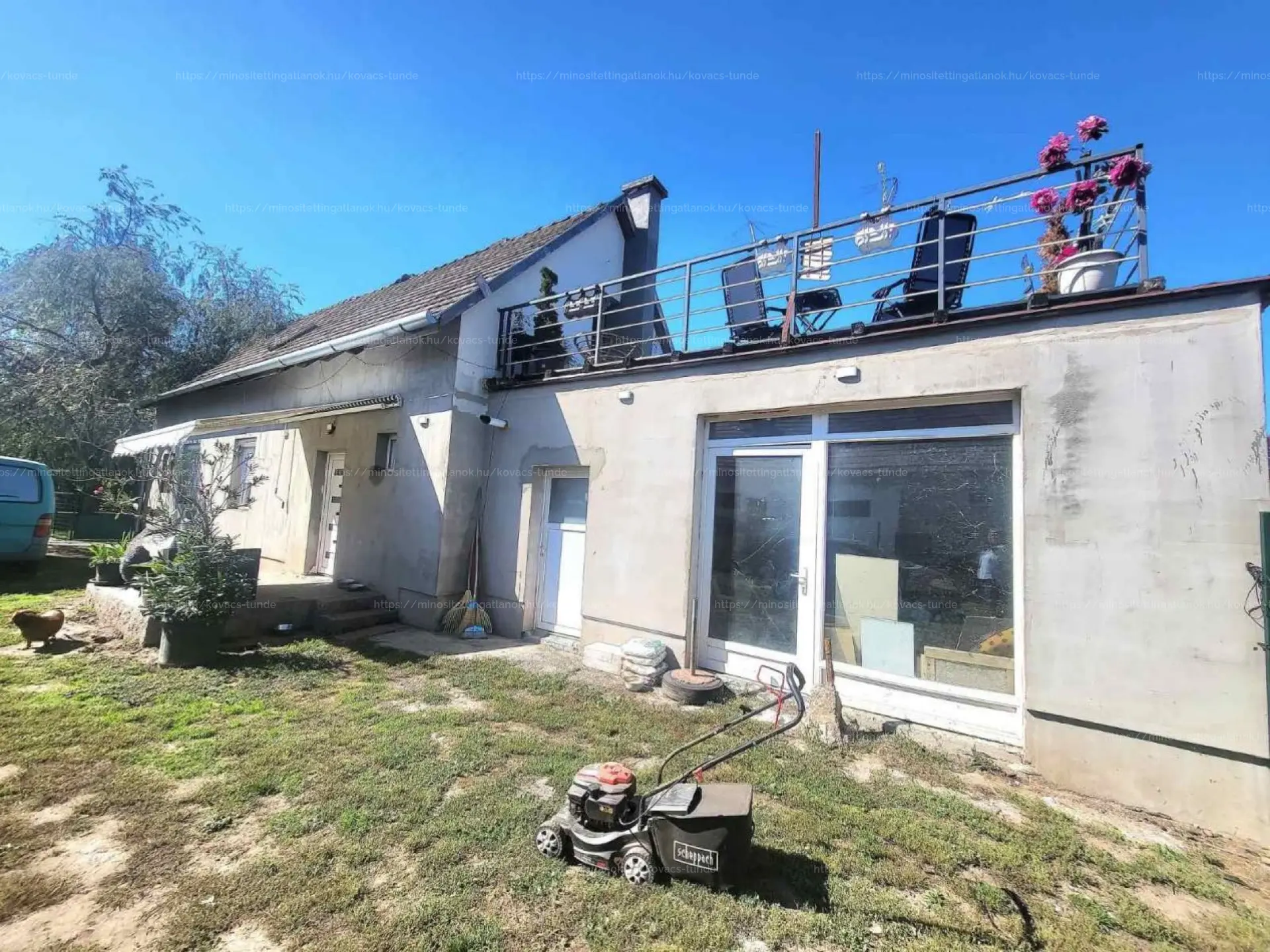 Öntözőrendszer + gondozott kert, gyümölcsfákkal