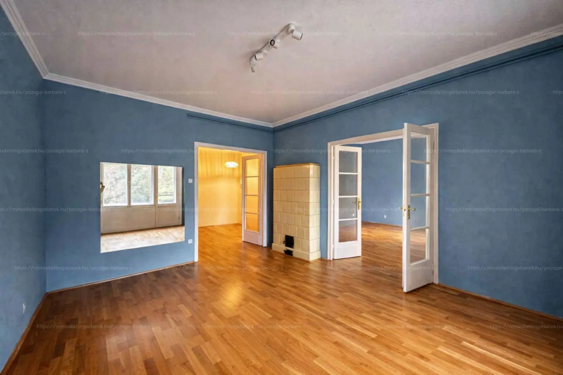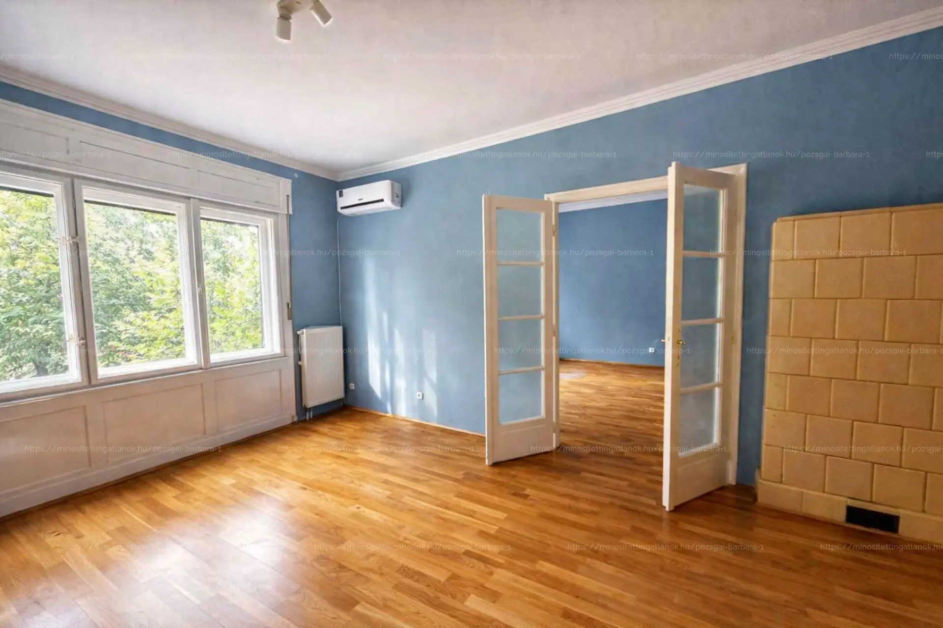 A két utcafronti, déli fekvésű szoba klasszikusan egybenyitható, a nagyobbikból erkély nyílik. A szobákban szép állapotú parketta, a kényelmet pedig szobánként külön 5 kW-os hűtő-fűtő klíma biztosítja.