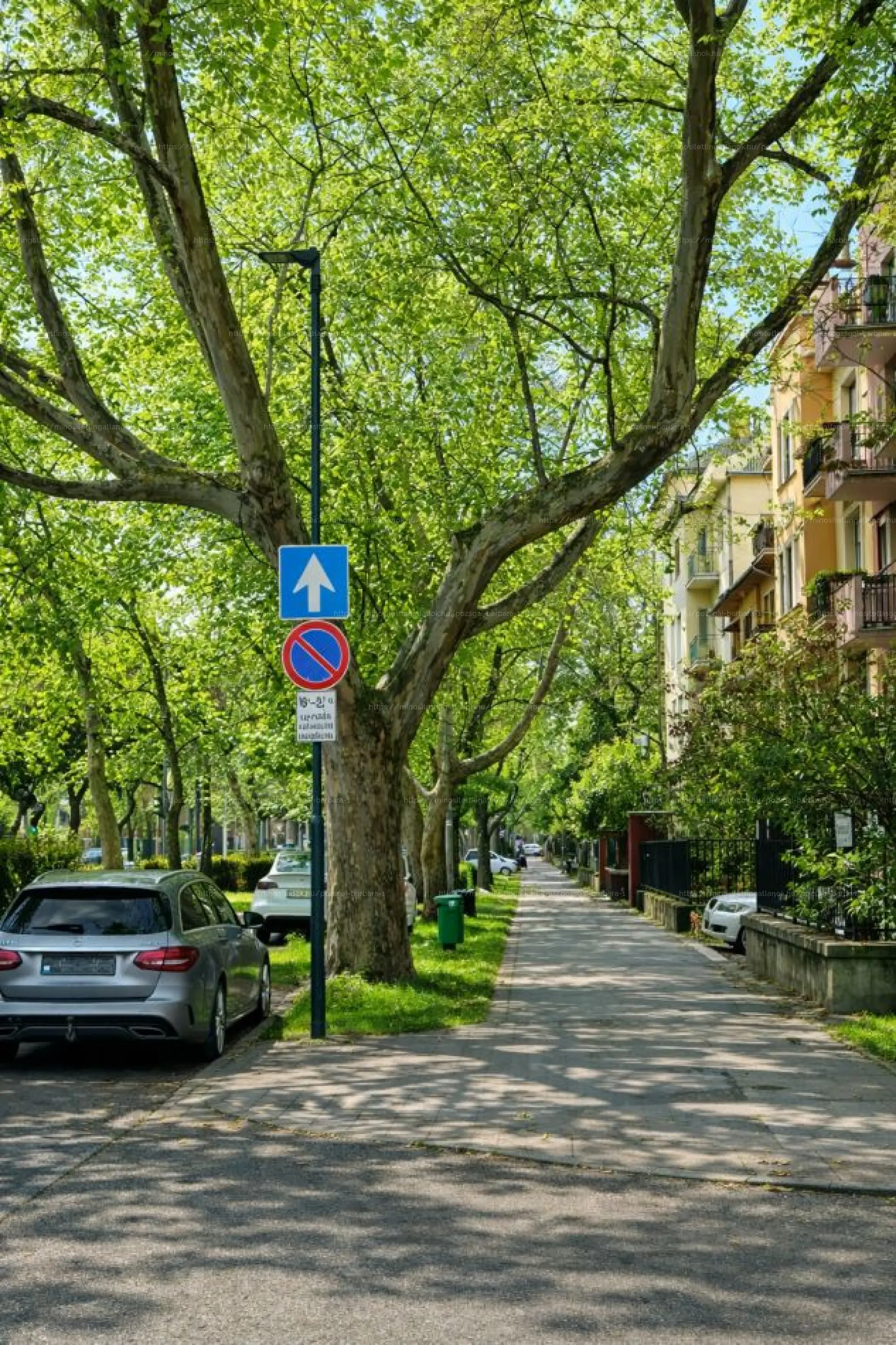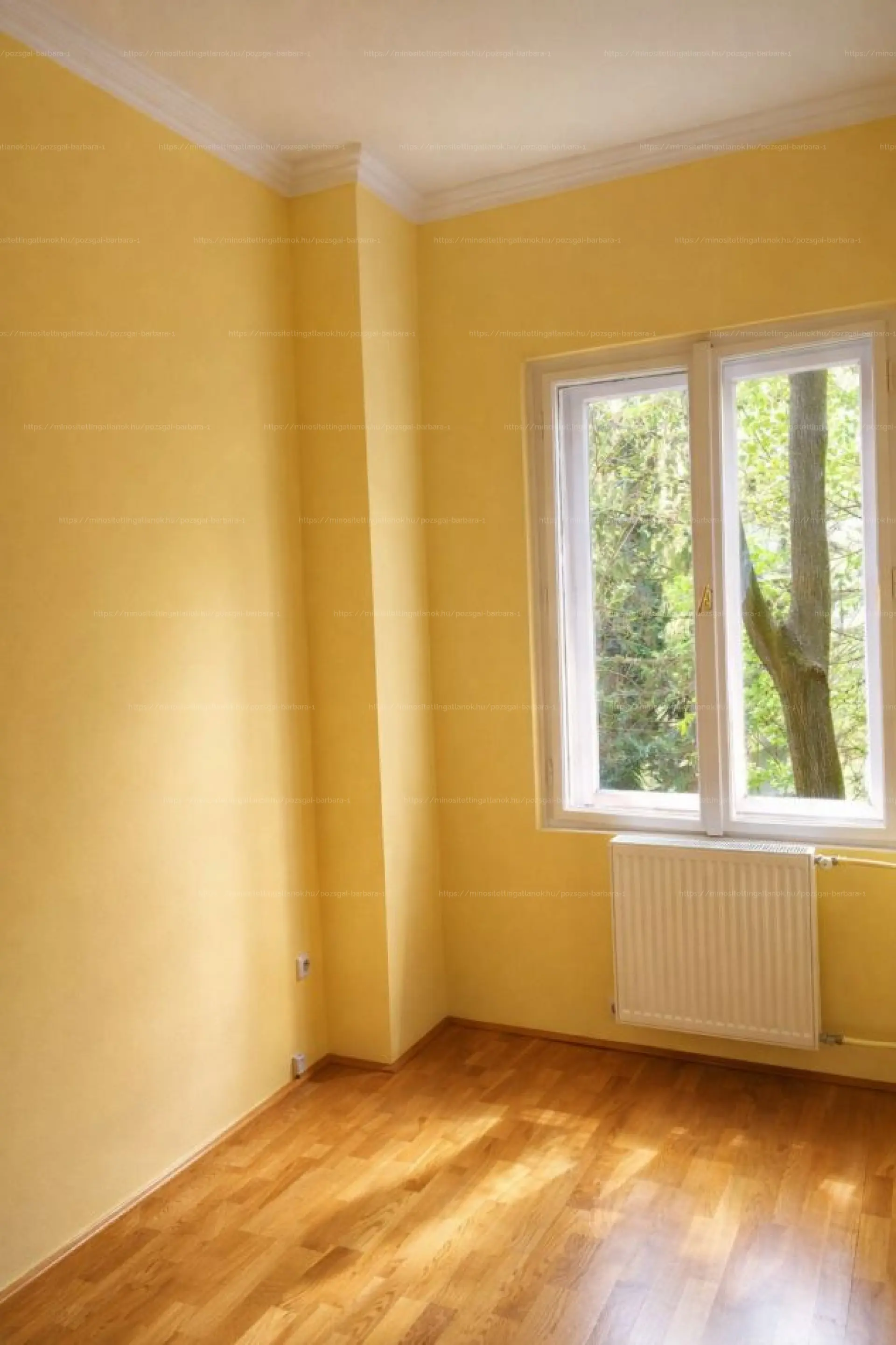 A lakás egyik legnagyobb értéke a világosság: nagy ablakai hatalmas zöld fákra és a csendes szervizútra néznek.