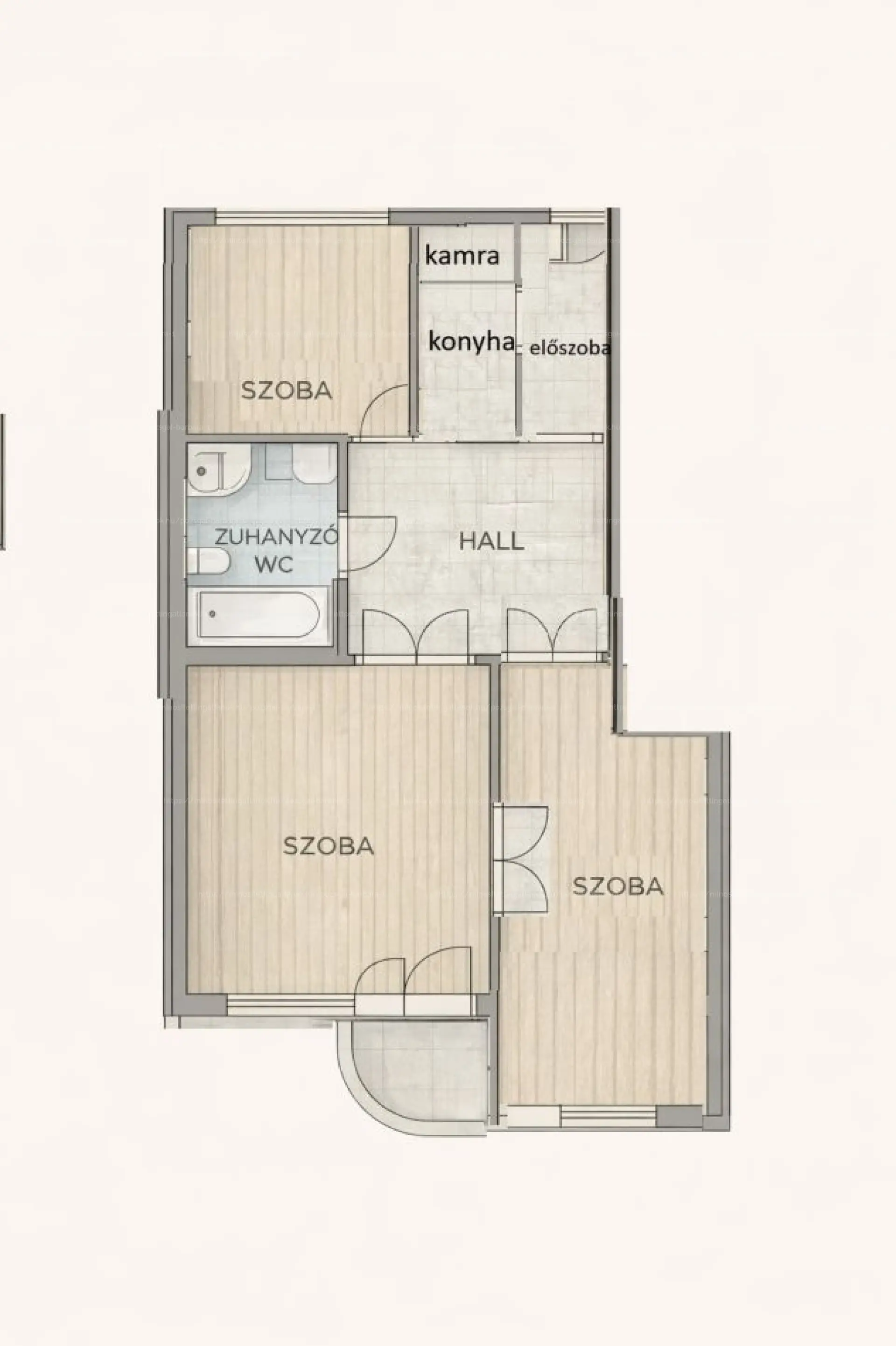 hall, ahonnan minden helyiség külön nyílik