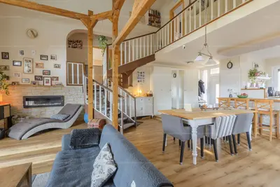 Az ingatlan tágas, világos belső terei, a galériás kialakítása és az impozáns, 5,8 méteres belmagasságú nappalija valódi loft jellegű életérzést adnak.