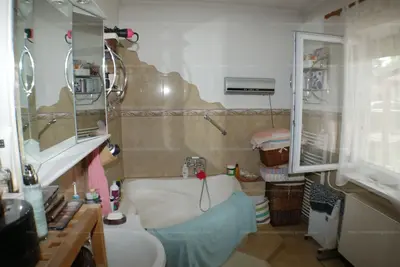 Dupla összkomfort jellemzi így a két lakrész teljesen külön élhet mégis rugalmasan egyben használható . A széles utcafrontú telek remek terep veteményeshez gyerekjátszónak vagy házi medencéhez a maximális családi pihenést szolgálva .