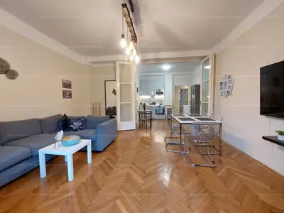 A Dob utca egyik legendás házában eladó egy 80 m²-es, 2 szoba + hall + cselédszobás, erkélyes lakás, részleges Klauzál téri kilátással 🌳