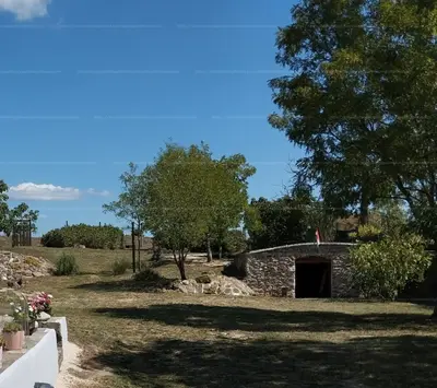 1242 m2-es, összközműves telken fekszik, gáz nem került bevezetésre az ingatlanba. További melléképületek a kertben: bazalt kőből épült 25 m2-es pince, 2 m2-es kerti tároló, valamint egy 25 m2-es lemezgarázs.