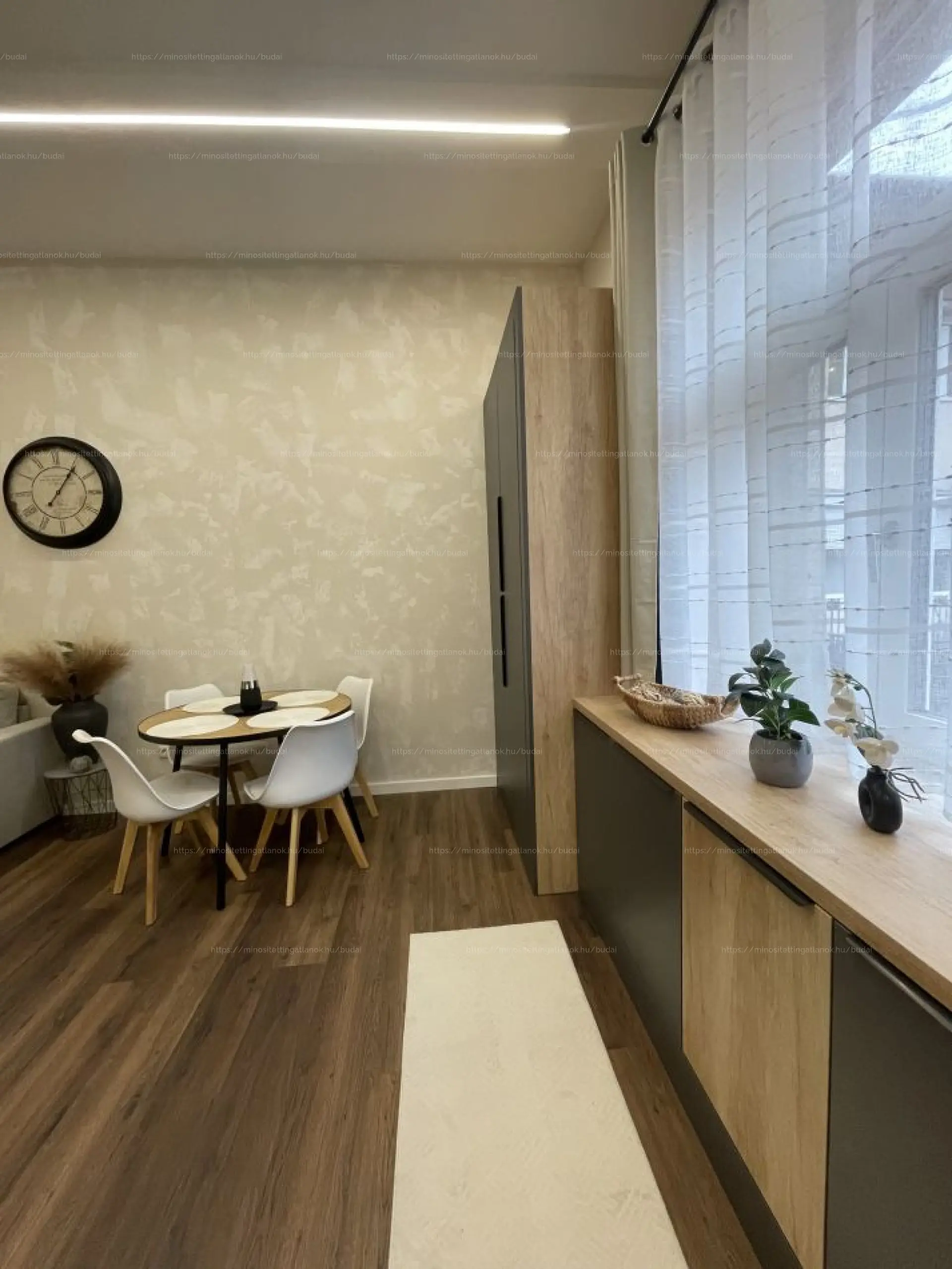 egyedileg, asztalos által készített bútorok, teljesen gépesített konyha, modern burkolatok, új víz- és elektromos hálózat, valamint inverteres klíma gondoskodik arról, hogy nyugalmat és komfortot teremtsen már az első naptól.