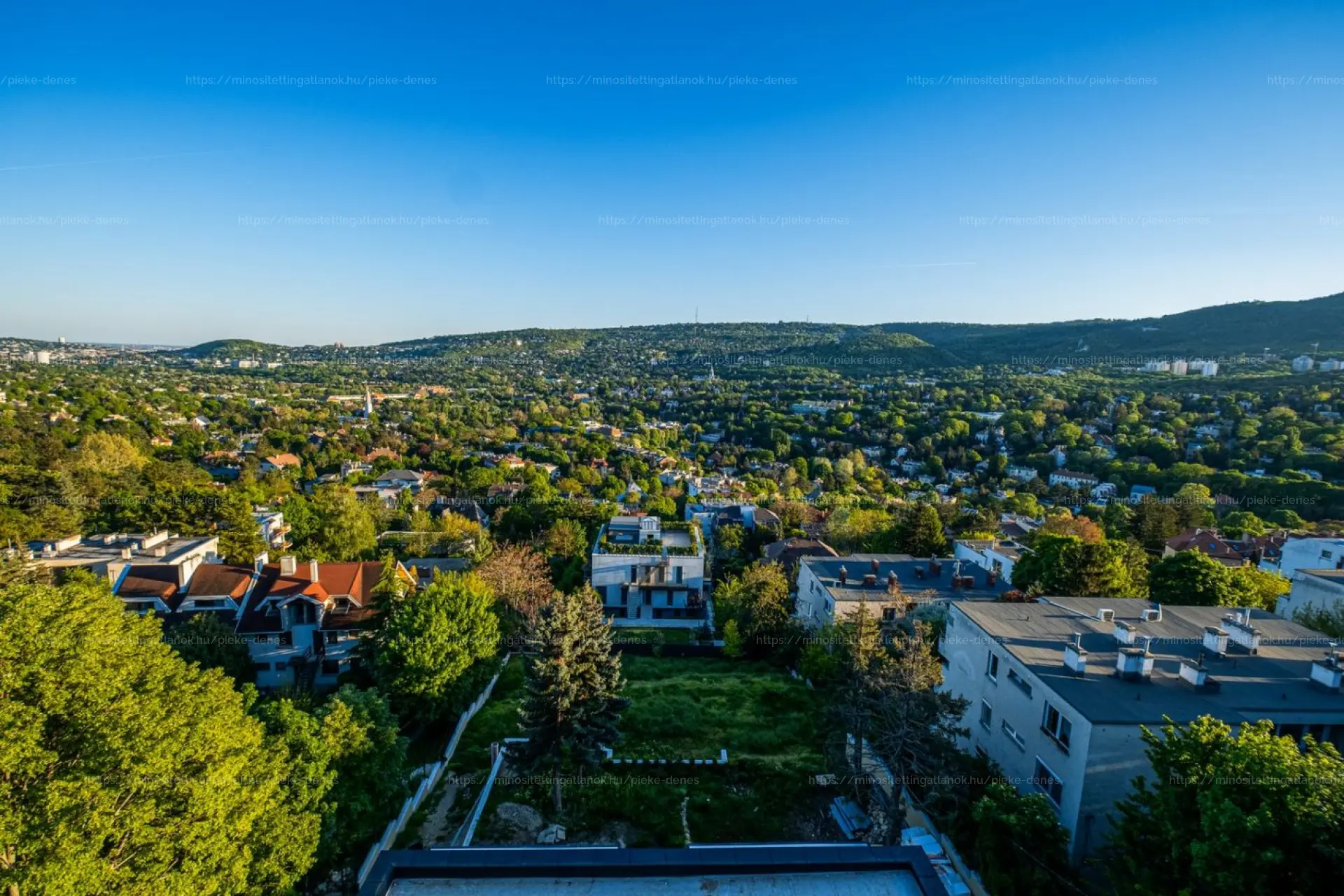 A nappaliból, a hálószobákból és a közösségi terekből is 180°-os kilátás nyílik Pasarétre, az Istenhegyre és a városra. A 133 m²-es tetőterasz azonban igazi különlegesség: a naplementék, baráti vacsorák és pihenőpillanatok helyszíne, ahol a város fényei és a természet közelsége találkozik. Az automata ajtóval nyíló bejárat technikai eleganciával teszi teljessé az élményt.