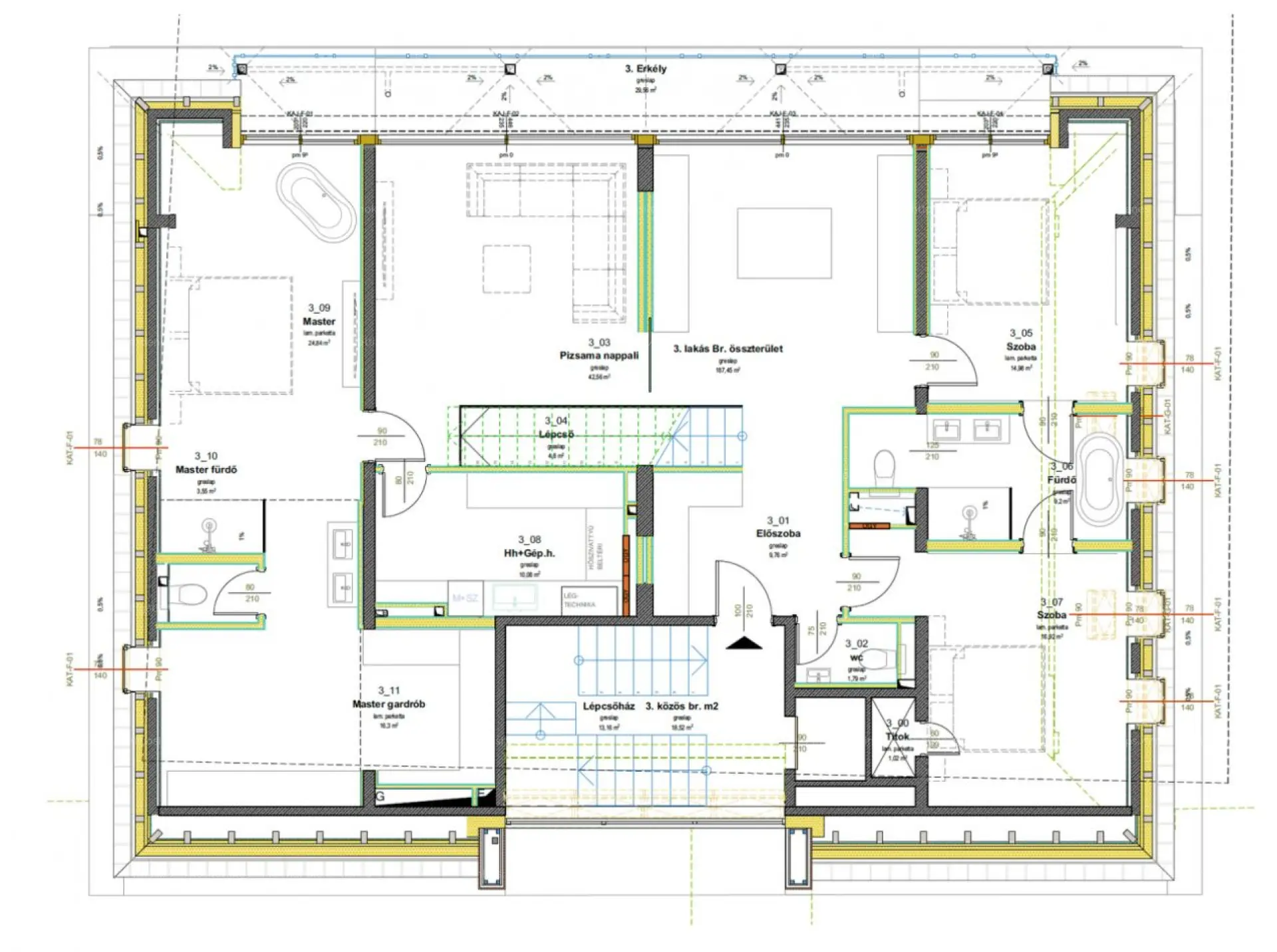 A lakás emelt szerkezetkész állapotban kerül átadásra: a gépészet, a nyílászárók és az okosrendszer már beépítésre kerültek. A végső kialakítás – burkolatok, szaniterek és bútorok – teljesen szabadon választható, így a penthouse minden részlete a tulajdonos stílusát tükrözheti. Igény esetén szakértői csapat segíti a teljes kivitelezést, akár rövid határidővel.