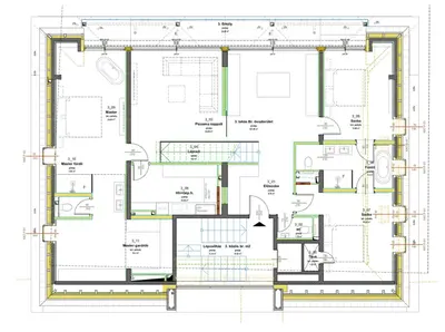 A belső elrendezés a nagypolgári tágas tereket idézi: nappali-étkező-konyha egyben, több hálószoba, gardróbszoba, háztartási helyiség és három fürdőszoba. A belső lépcső elegánsan köti össze a két szintet, miközben funkcionálisan is tagolja a tereket.
