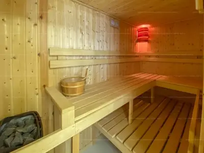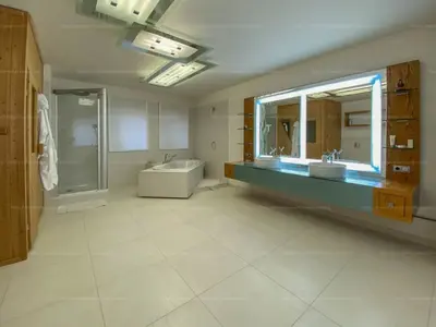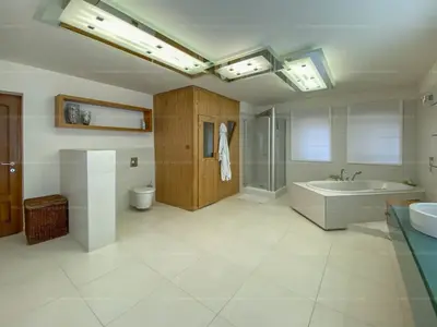 A hálószobákhoz beépített szekrény illetve gardrób tartozik. A nagyobb, 32 m2-es hálószoba igény szerint két szobává alakítható. A nagyobb fürdőszobában beépített elektromos szauna és masszázskád növeli a komfortérzetet.