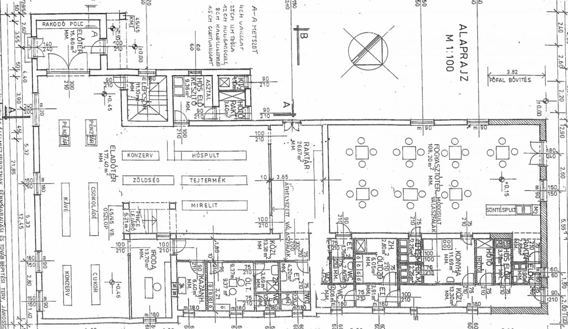 Tágas alapterület: nagy eladótér + raktár + szociális helyiségek
