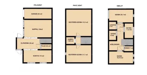 Az emelet három darab hálószobája, dolgozószobája és a modern fürdőszoba mindenféle igényt kielégít, míg a szuterénban található fűthető helyiségeket egyedi igények szerint lehet átalakítani: akár konditerem, iroda vagy baráti közösségi tér céljára. A 40 m2-es garázzsal és fedett kocsibeállóval bíró lezárt udvar extra kényelmet biztosít.