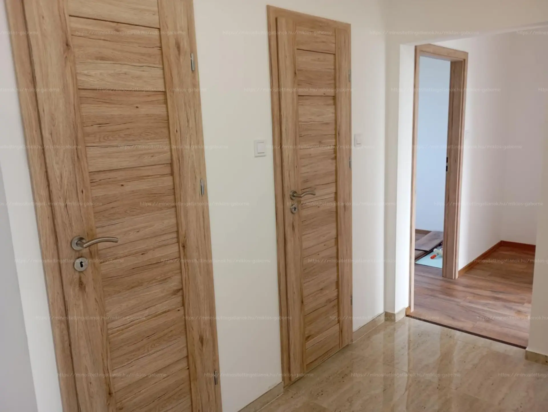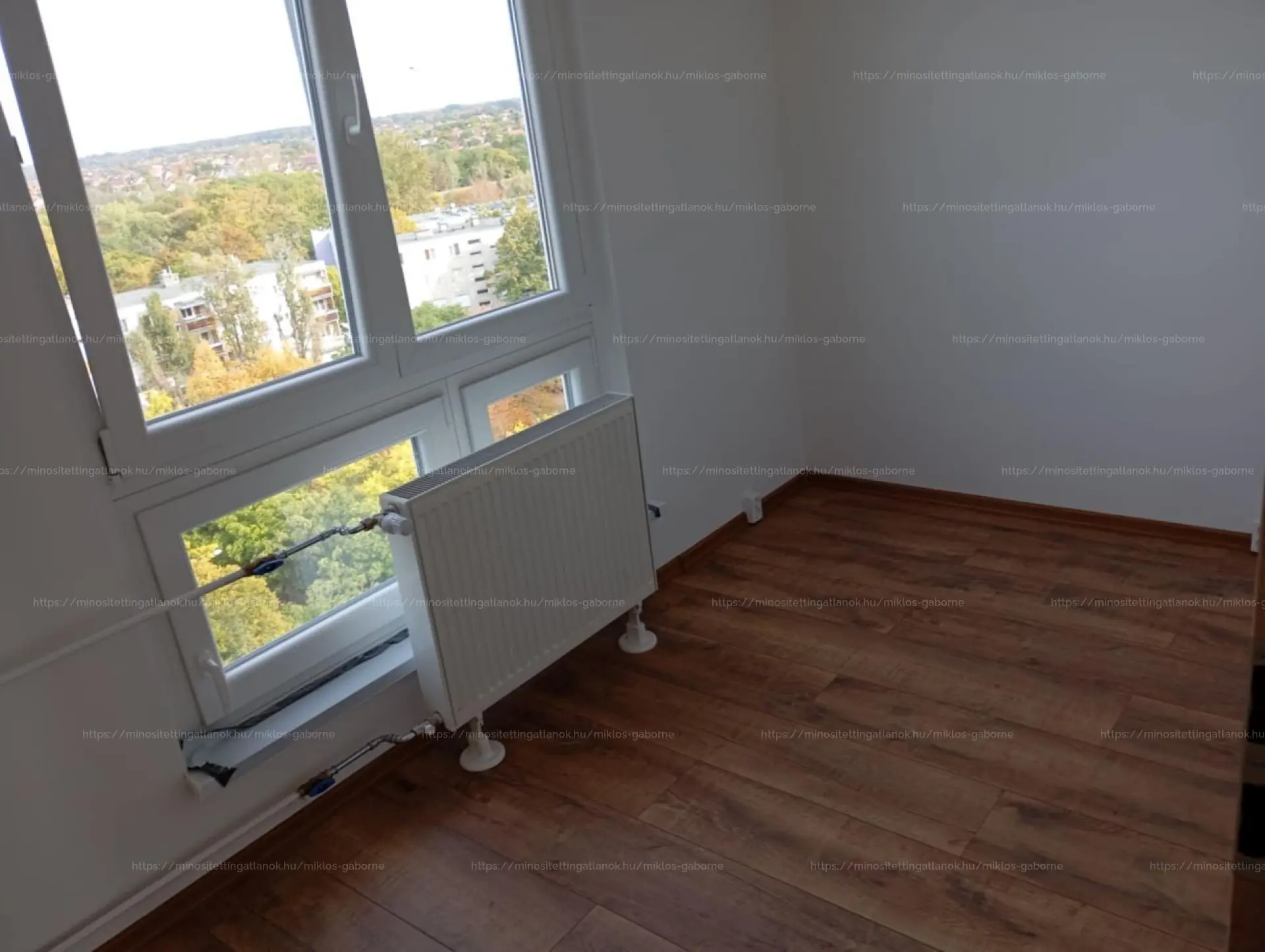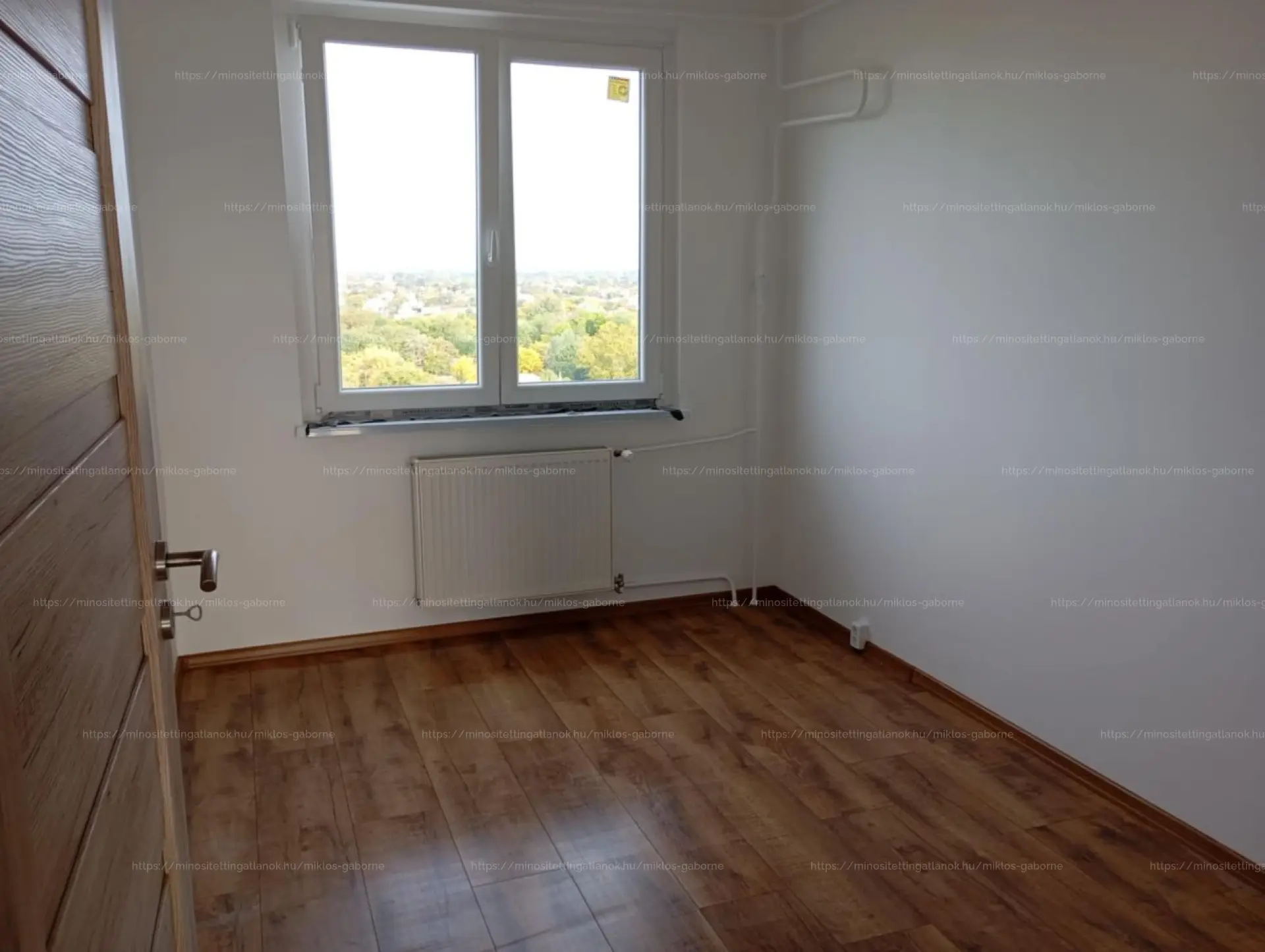 Laminált parketta a szobákban, frissen festett falak.