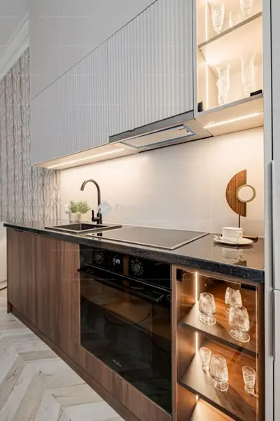 Az egyedi tervezésű konyhabútor teljes körűen gépesített, minőségi készülékekkel: