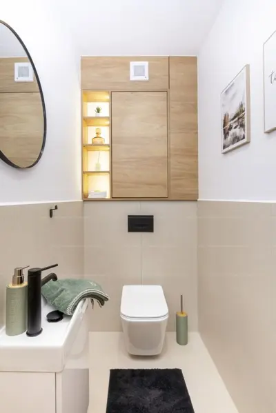 o káddal felszerelt, új emeleti fürdőszoba