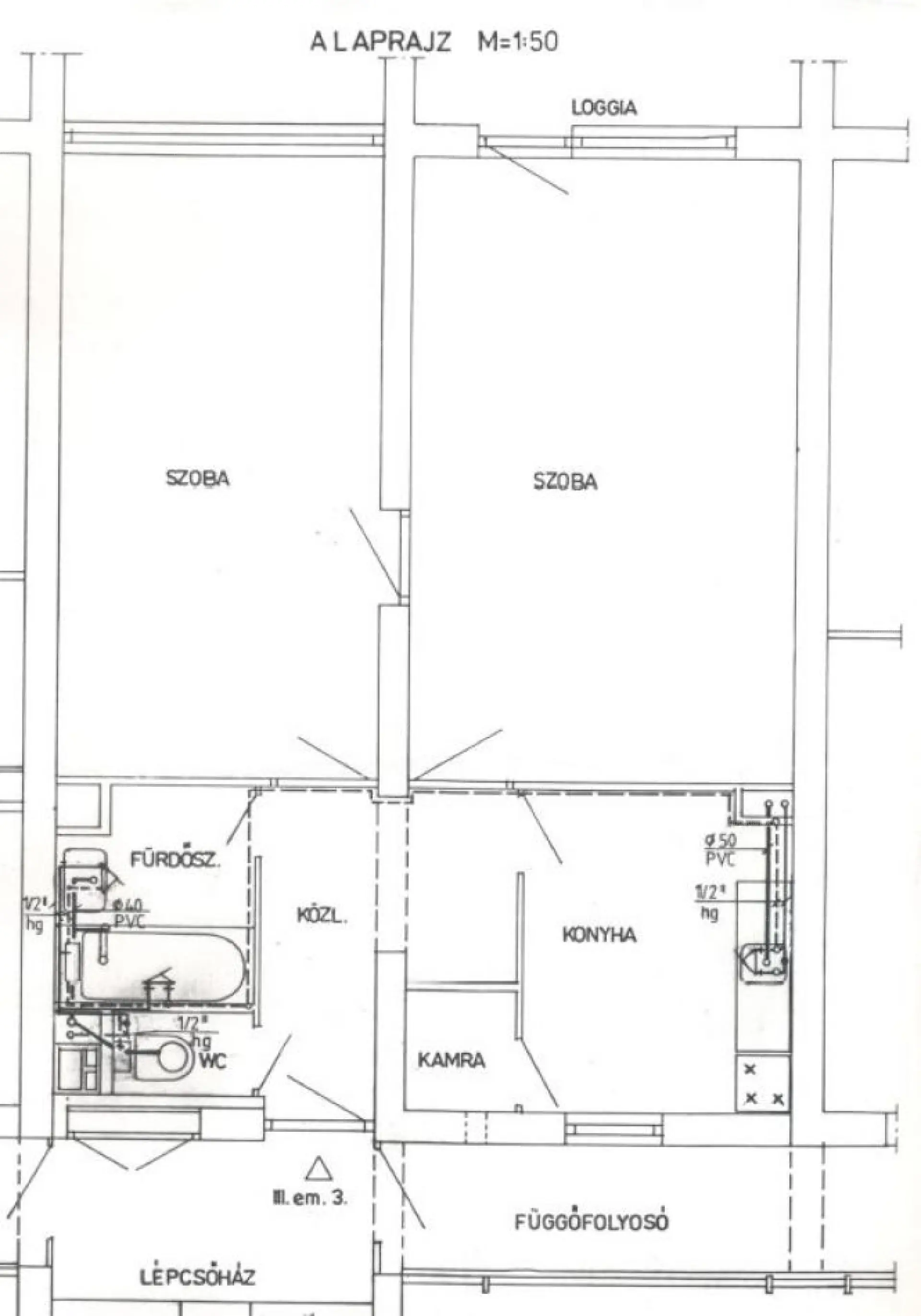 Csendes, zöld környezetben lévő téglablokkos társasház 3. emeletén helyezkedik el a 60 m2-es lakás. A 2 szobán kívül előszoba-közlekedő, konyha, kamra, fürdőszoba és külön WC alkotja. Az egyik szobát jól kihasználható loggia egészíti ki.