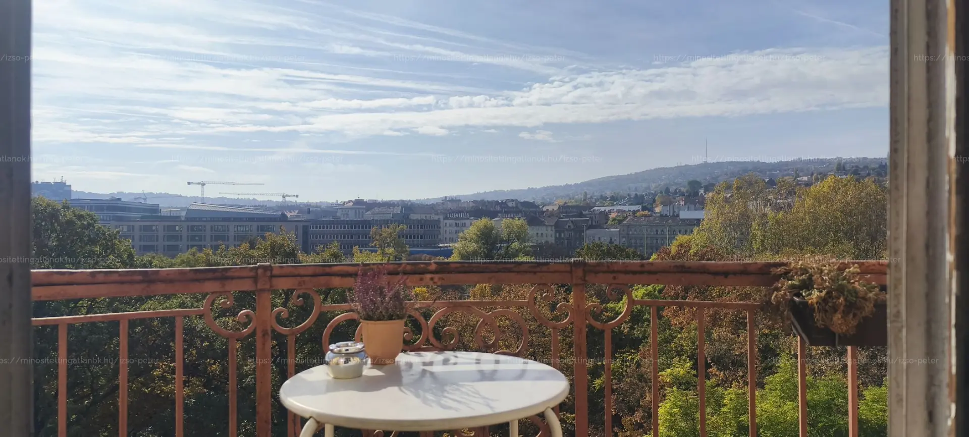- elvehetetlen, a budai hegyekre és a Vérmezőre tekintő örökpanorámája mindhárom nagy szobából és az erkélyről is élvezhető