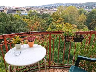 - elvehetetlen, a budai hegyekre és a Vérmezőre tekintő örökpanorámája mindhárom nagy szobából és az erkélyről is élvezhető
