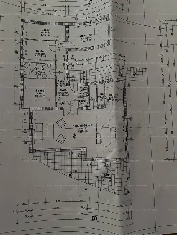 Az ingatlan nappali-etkezö terasz- es kertkapcsolatos, 5 szoba, 2 gardróbszoba, 2 fürdőszoba – wc, kis kamra, konyha található benne, előszoba és közlekedők mellett, csaladoknak is kivaloan alkalmas elrendezessel. Monolit födemeknek köszönhetöen a nappali-etkezö több mint 58 m2-es.