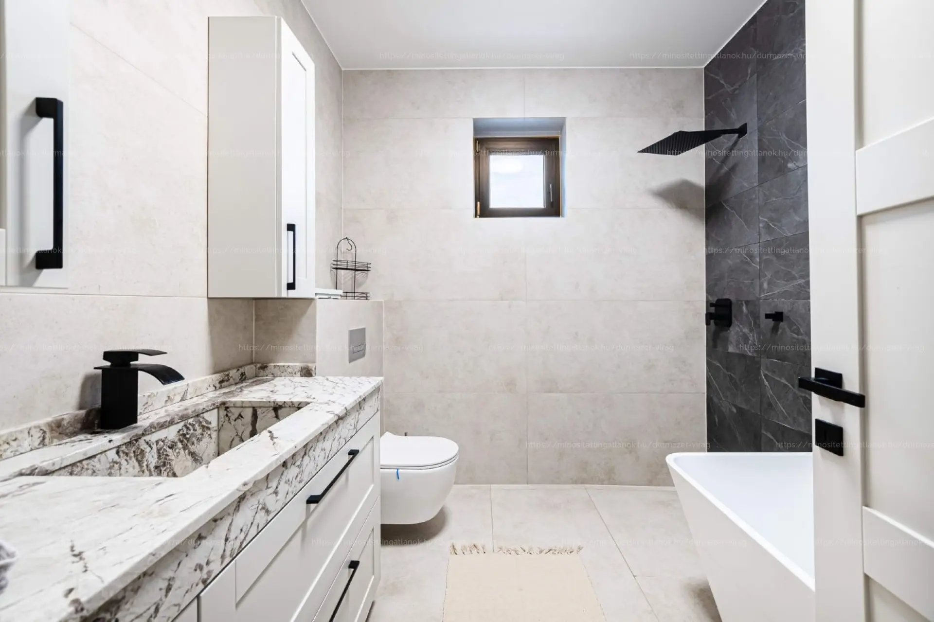 - Kiváló építőanyagokból épült: 15 cm grafitos hőszigetelés, 3 rétegű nyílászárók, mind elektromos redőnnyel felszerelve